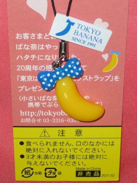 ☆商品説明☆ ご覧いただきありがとうございます^^東京ばな奈オリジナル バナナの非売品のストラップです。と~ってもかわいいですよ^^ マスコット部分の大きさはタテ 約3cm、ヨコ 約2cmです。コレクション用として大切に保管していましたので新品、未使用でたいへんきれいな状態ですが家庭で保管していた物になりますのでご理解いただける方のご入札をお願い致します。 ☆発送方法☆ 定形外郵便、ゆうぱっく ☆コメント☆ ノークレーム、ノーリターンでお願いします。ご不明な点がございましたらお気軽にお問合わせ下さい。他にもキャラクターグッズたくさん出品しております☆ 良かったらご覧下さいね*^^*