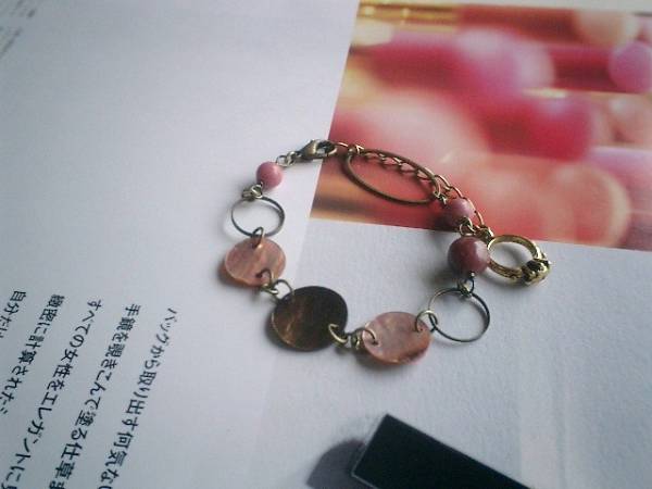 お気に入りのフォルム・・シリーズです♪ピンク・ルージュ・・シックなロードナイトのブレスレットです♪ピンクシェルやデザインリングを合わせてキュートな表情です♪ロードナイトは6ミリ、8ミリの丸玉です♪シェルビーズはブラウンピンクやモーヴピンク、ベージュピンクなど大人っぽいピンクを集めました♪長さは全長23センチ位で調節自由です♪お揃いのネックレスも出品しています♪シンプルで飽きのこないいつまでも着けられるデザインを考えて作りました!ハンドメイドをご理解頂いてノークレーム、ノーリターンでお願いします