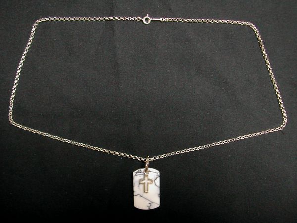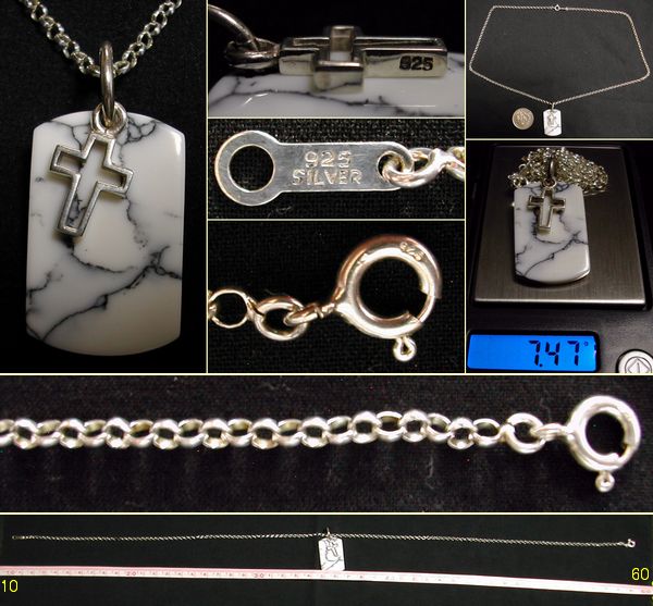 大理石のようなマーブル柄のプレートと銀の十字架を組み合わせたトップ付きのシルバーネックレスです。