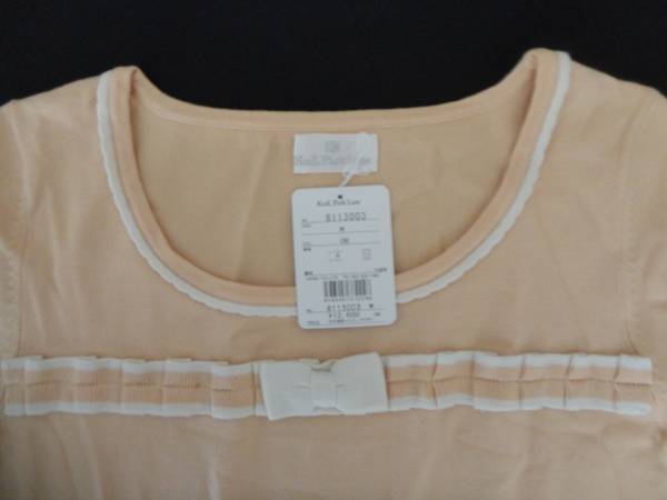 カールパークレーンのニットワンピース、新品、タグ付きです。チュニックとしても使えると思います。色は薄いオレンジで、ベージュに近い感じです。素材はレーヨン47%、綿31%、ナイロン22%になります。元は12600円のお品です。