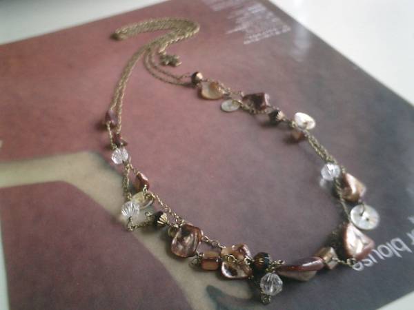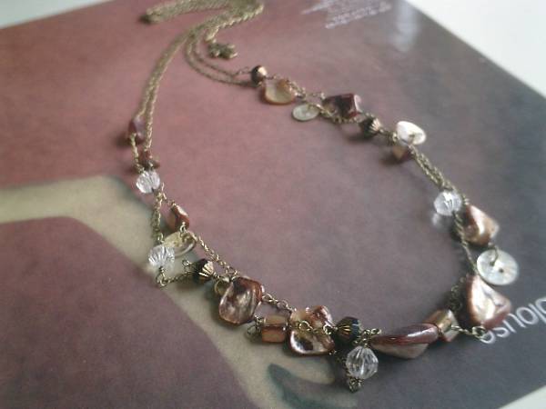 ジゼルの宝石箱・・シリーズです♪シックなダークパープル・・キュートなシェルを集めた2連のネックレスです♪チェコビーズやお花模様のシェルを合わせてさりげなく華やかな表情です♪ダークパープルのシェルは7ミリから20ミリ位までのデザイン違いです♪長さは76センチ+アジャスター14センチで最長90センチ位です♪お揃いのブレスレットも出品しています♪シンプルで飽きのこないいつまでも着けられるデザインを考えて作りました!ハンドメイドをご理解頂いてノークレーム、ノーリターンでお願いします