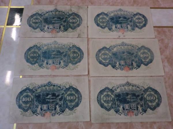 日本銀行券A号100円 4次100円の美品を6枚です。 画像でご判断頂きノークレーム・ノーリターンをご了解の上、ご入札下さい。 神経質な方はご入札お控え下さい。 最近、途中で紛失する事件が発生しておりますので安全で確実にお届けできて追跡出来るレターパックをお勧めしております。
