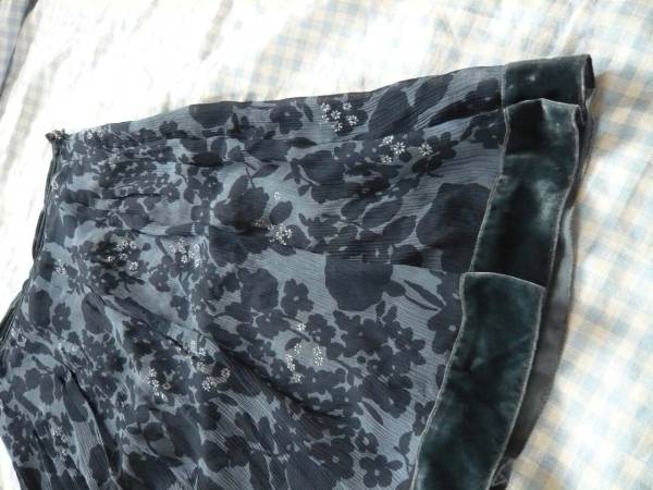 色は紺、白っぽい青、ラメの花のプリント 素材:絹100% 別布レーヨン82%絹18% 裏地はポリエステル100% サイズ38(M) ウエスト68cm着丈59cm 他にも洋服、バッグ、靴、小物、本を出品していますので見てください。