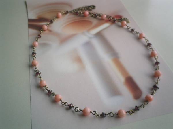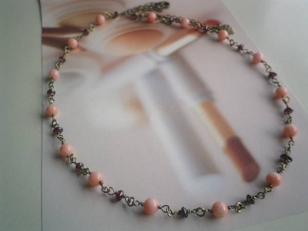 ロゼッタのお気に入り・・シリーズです♪やさしいピンク・ピンク珊瑚とガーネットのネックレスです♪シックなサーモンピンクの珊瑚と深い赤のガーネットが大人可愛いネックレスです♪6ミリの丸玉のピンク珊瑚にガーネットのボタンカットを合わせました♪長さは全長60センチ位で調節自由です♪お揃いのネックレスやブレスレットも出品しています♪♪シンプルで飽きのこないいつまでも着けられるデザインを考えて作りました!ハンドメイドをご理解頂いてノークレーム、ノーリターンでお願いします