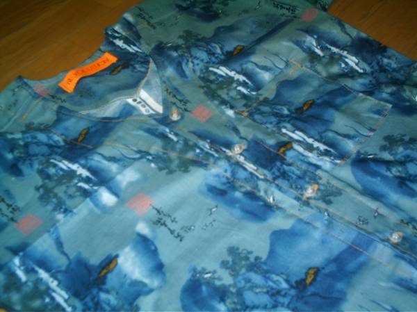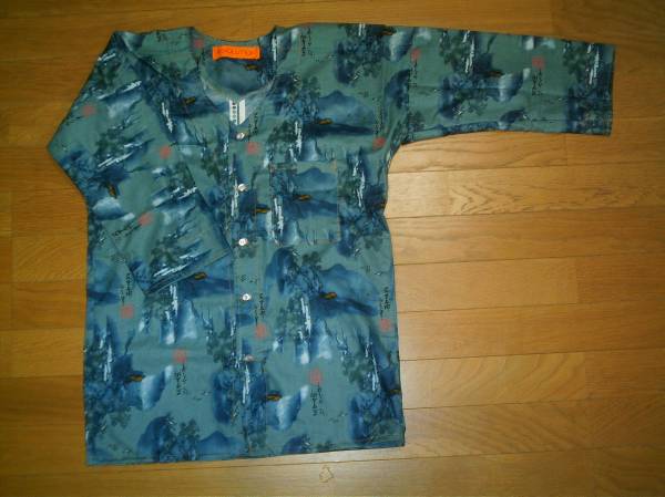 ☆手作り☆ 山水画風プリント祭りシャツ 小(S~M)新品 送無料あり