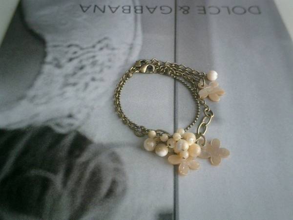 女の子的ディテール・・シリーズです♪大人色のベージュ・・シックなマザーオブパールのブレスレット2本セットです♪2本重ねても単品でも可愛いです♪15ミリ、17ミリ位の大きさ違いのマザーオブパールのお花はデザインチェーンを合わせてキュートモダンしています♪長さは16センチ+アジャスター6センチで最長22センチ位です♪3ミリ、4ミリ、6ミリの丸玉のマザーオブパールは華奢なボールチェーンを合わせて可憐な表情です♪長さは16センチ+アジャスター6センチで最長22センチ位です♪単品やお揃いのネックレスやピアスも出品しています♪♪ハンドメイドをご理解いただいてノークレーム・ノーリターンでお願いします♪