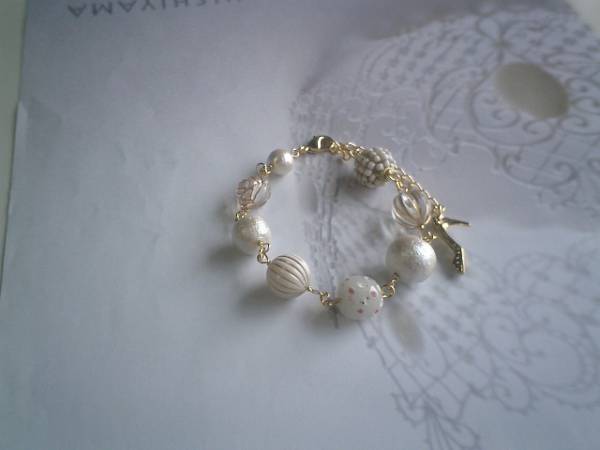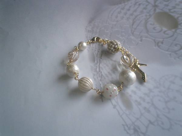 ナイーブ少女・・シリーズです♪やさしいベージュを集めて・・ふんわりやさしいナチュラル・ベージュのブレスレットです♪8ミリから14ミリ位までの大きさ違い、デザイン違いのコットンパールやドットのとんぼ玉やウェディングビーズや樹脂ビーズやビーズ玉など個性的な素材を集めました♪長さは全長23センチ位で調節自由です♪♪お揃いのネックレスも出品しています♪ハンドメイドをご理解いただいたノークレーム・ノーリターンでお願いします♪