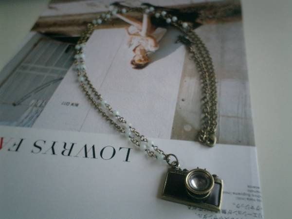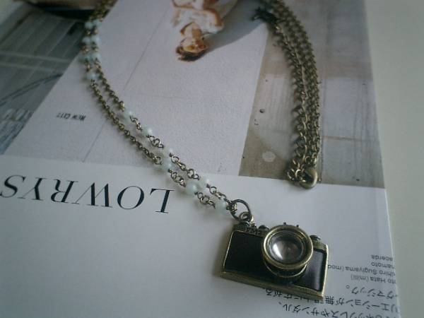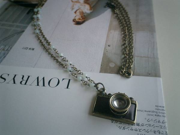 ガールズ・コレクション・・シリーズです♪小さなお気に入り・・可憐なアマゾナイトと小さなカメラのチャームのネックレスです♪アマゾナイトは4ミリの丸玉です♪ダークブラウンのカメラチャームは3・2×2・3センチ位です♪シンプルなデザインで色々なシーンで楽しんでいただけます♪長さは90+アジャスター13センチで最長103センチ位です♪♪お揃いのブレスレットも出品しています♪♪シンプルで飽きのこないいつまでも着けられるデザインを考えて作りました!ハンドメイドをご理解頂いてノークレーム、ノーリターンでお願いします