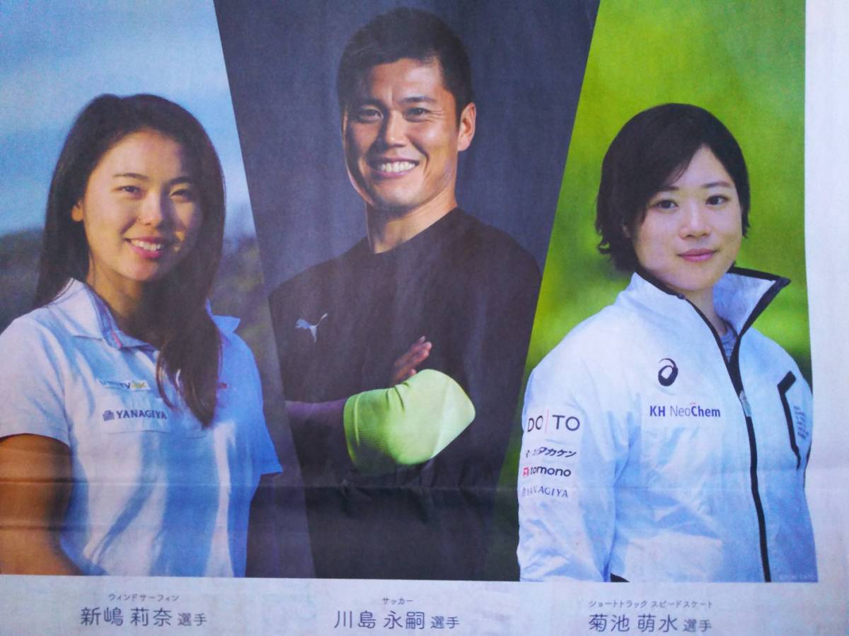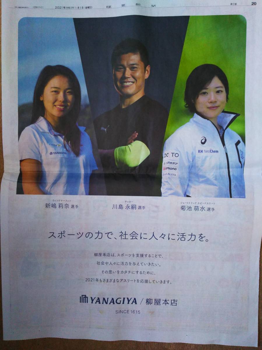 | ◆サッカー川島永嗣 ウィンドサーフィン新嶋莉奈 スピードスケート菊池萌水 YANAGIYA新聞全面広告◆ | ||
