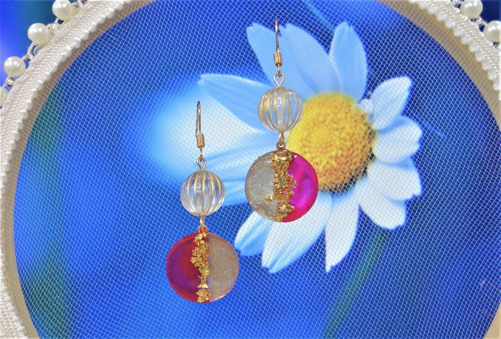 【レジンラウンドパーツ/金箔/ローズ色】送料無料/ハンドメイドアクセサリー