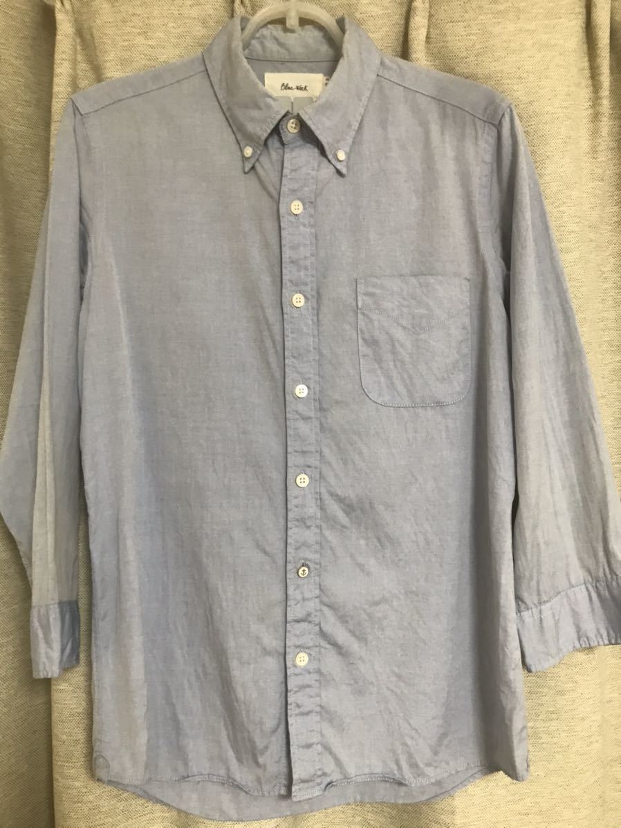 爽やかなサックスブルーの七分袖シャツは今の季節に使い勝手がいいと思います。(日本製です)