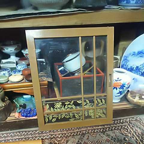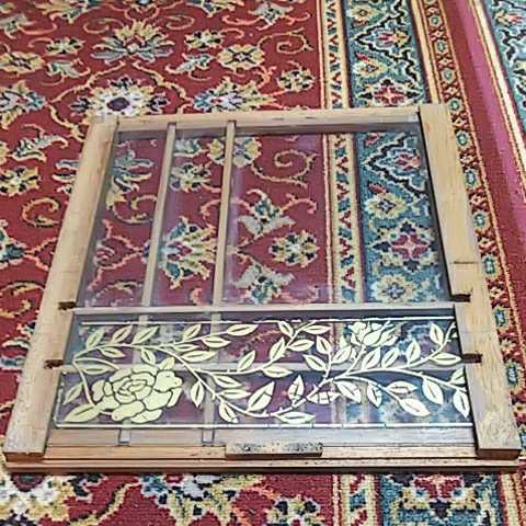 希少 昭和レトロ 花柄ガラス 戸 建具 古民家 古民具 アンティーク 和モダン 和室 ガラス 家具 布 小窓