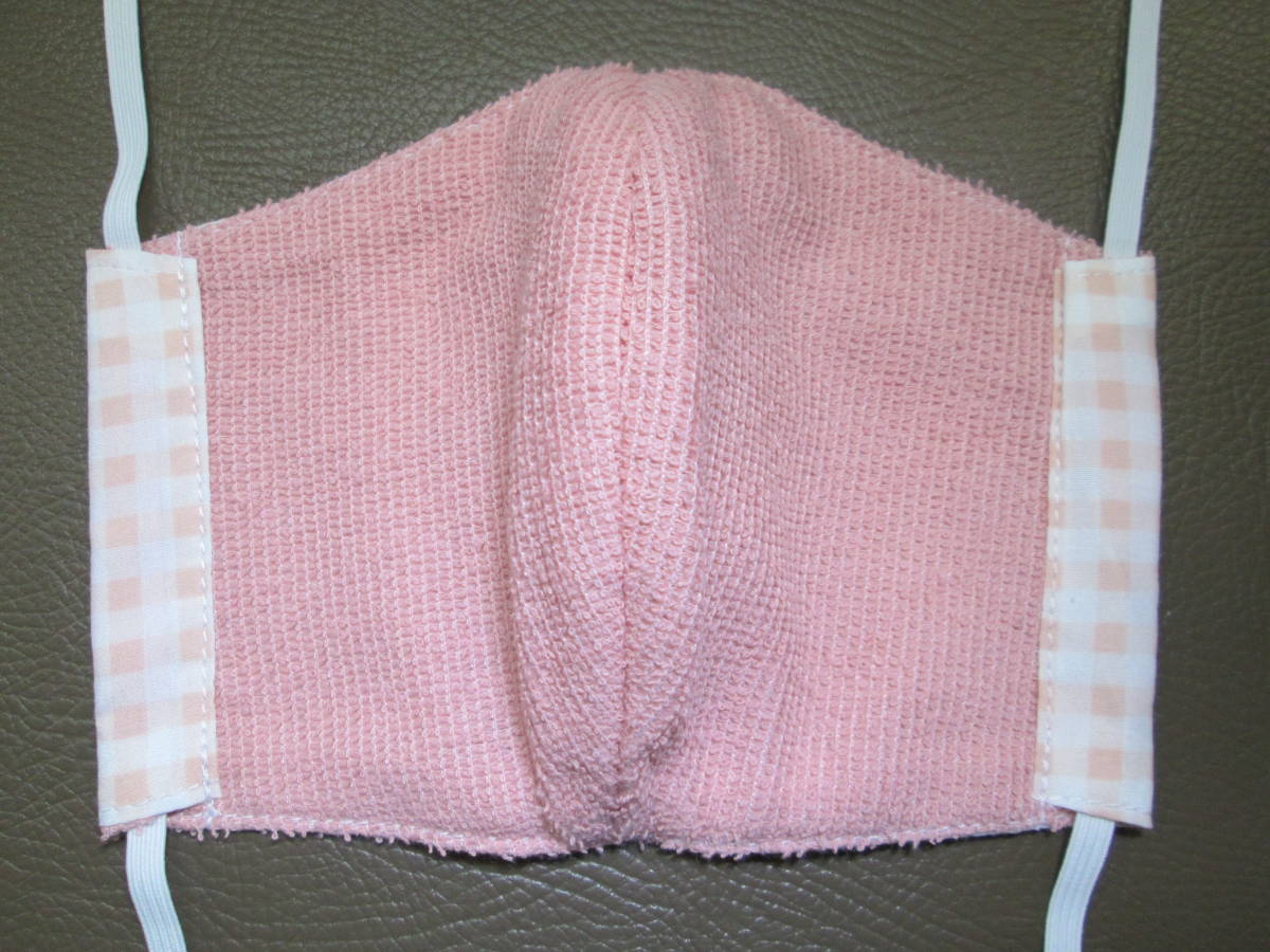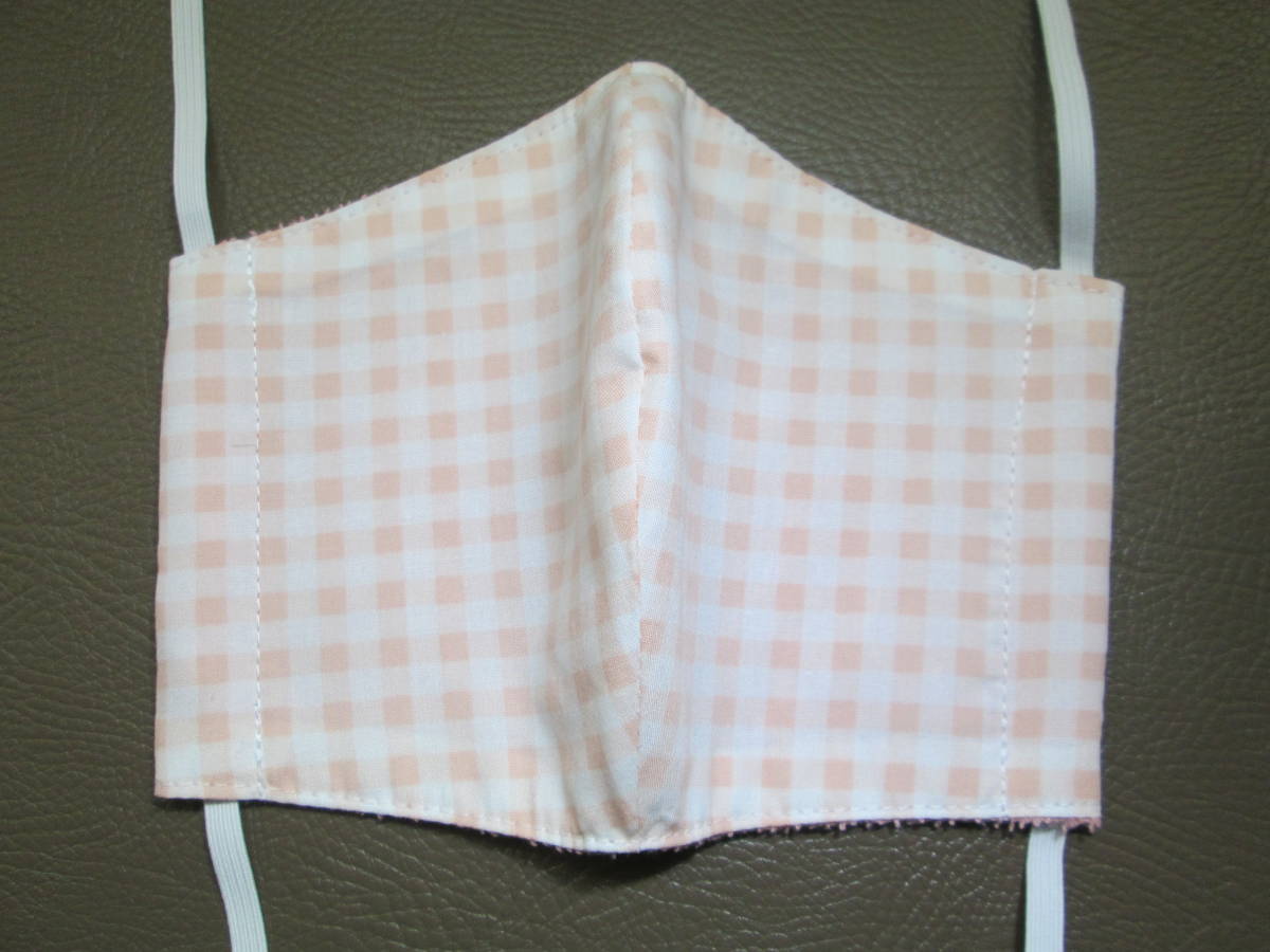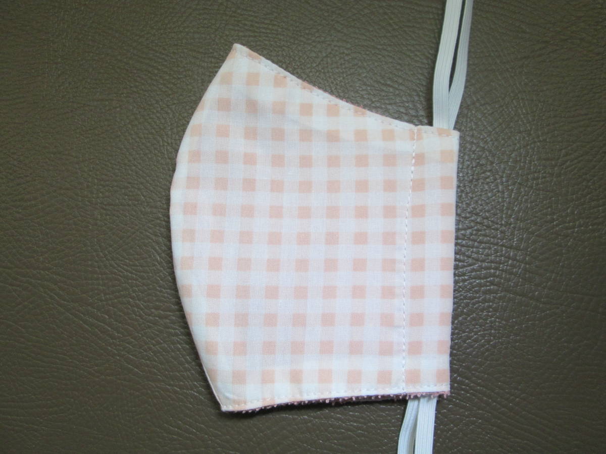 ♯8231 チェック ピンク 大人用 ハンドメイド 立体マスク 表綿100% 裏綿パイル 手作り 布マスク インナーマスク 送料無料 約18×13