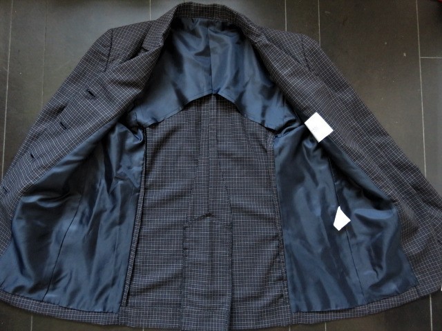 ジャケットは背抜き裏地、スッキリとしたポケット、バックにスリットの様なハコヒダ入っています。