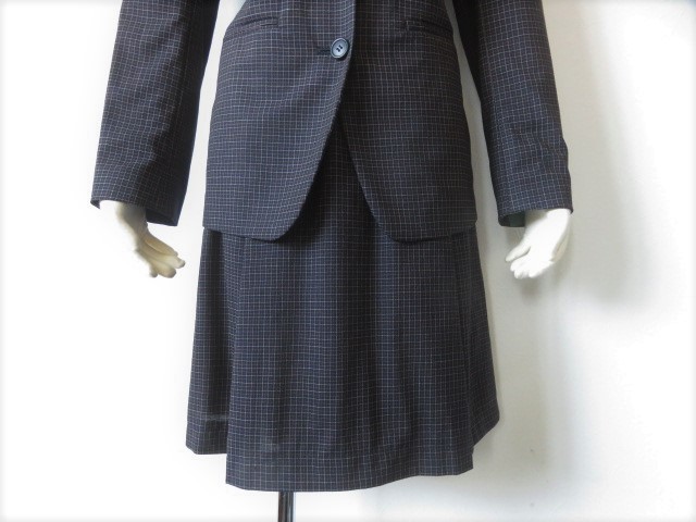 ■新品同様 綺麗な上質美品【PAGEBOY】ページボーイ 高級 ウール スーツ 9号 M ネイビー チェックスーツ 濃紺 学生 通勤 s491