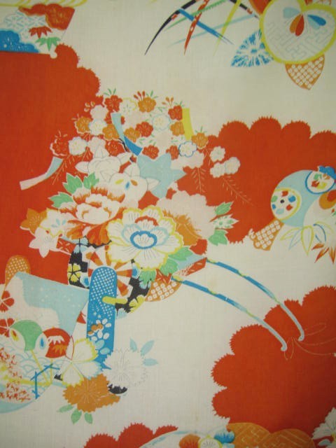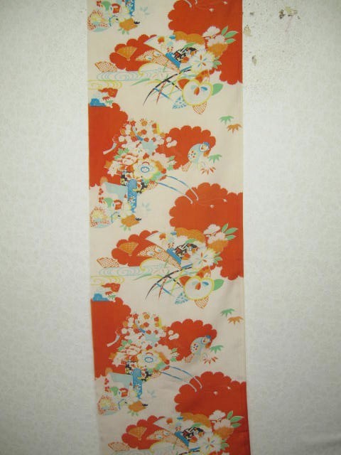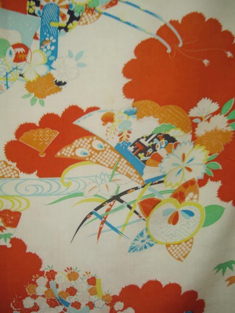614=27★花車*扇*菖蒲*桜*撫子*牡丹*立花*交織*古布はぎれ★リメイク