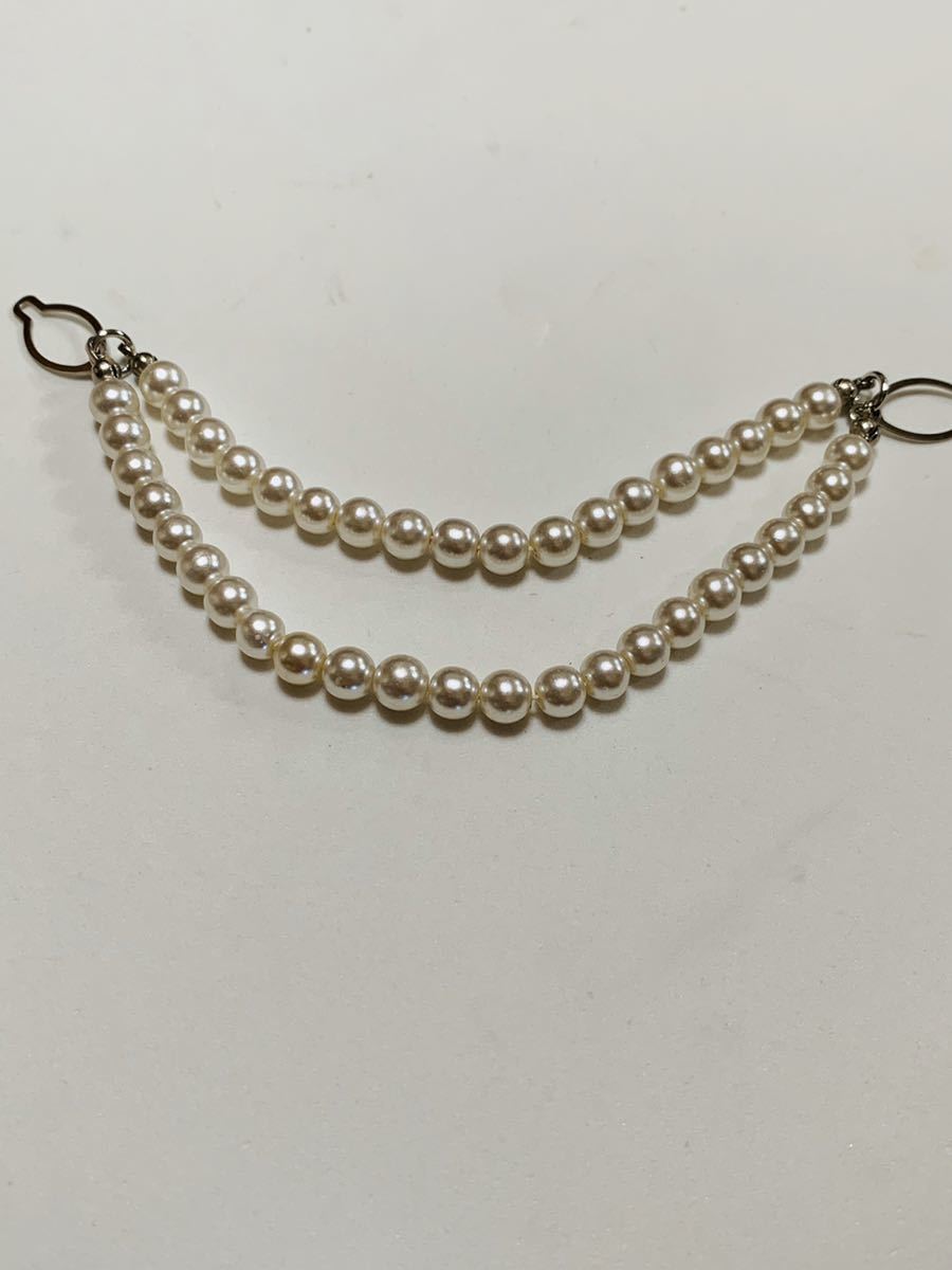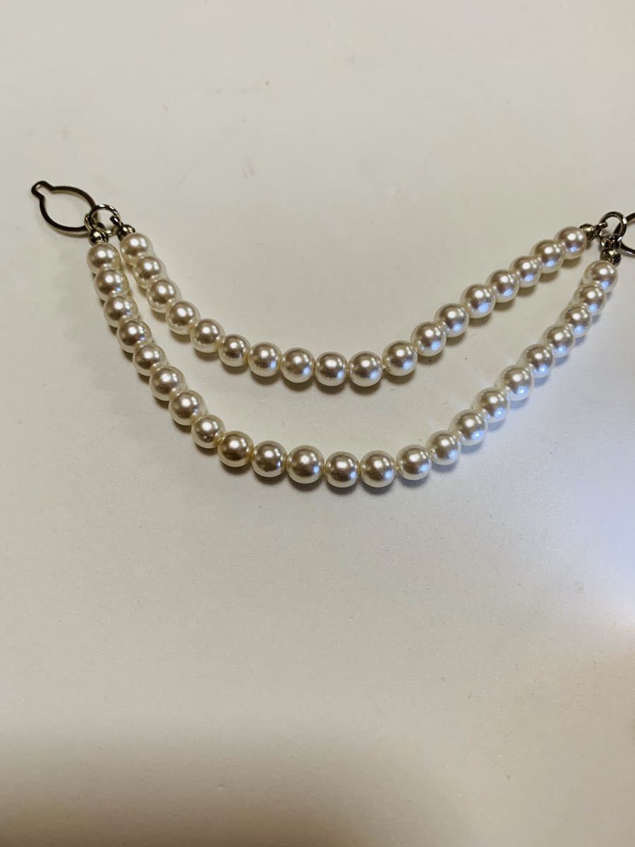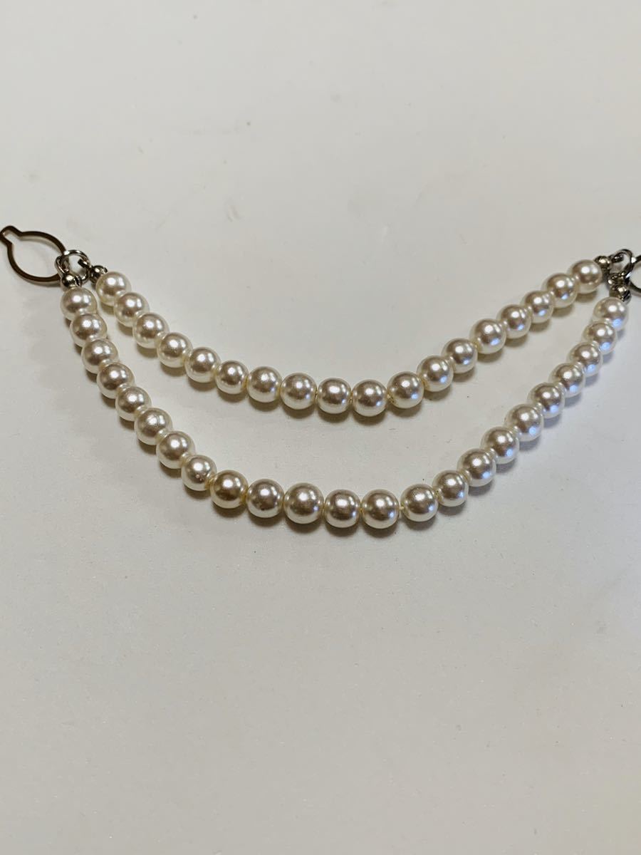 フェイクパールの、帯留めです、フェイクパールですが、アコヤ真珠のような美しい輝きがあります、2連になっており、ひと玉は5ミリ、あります