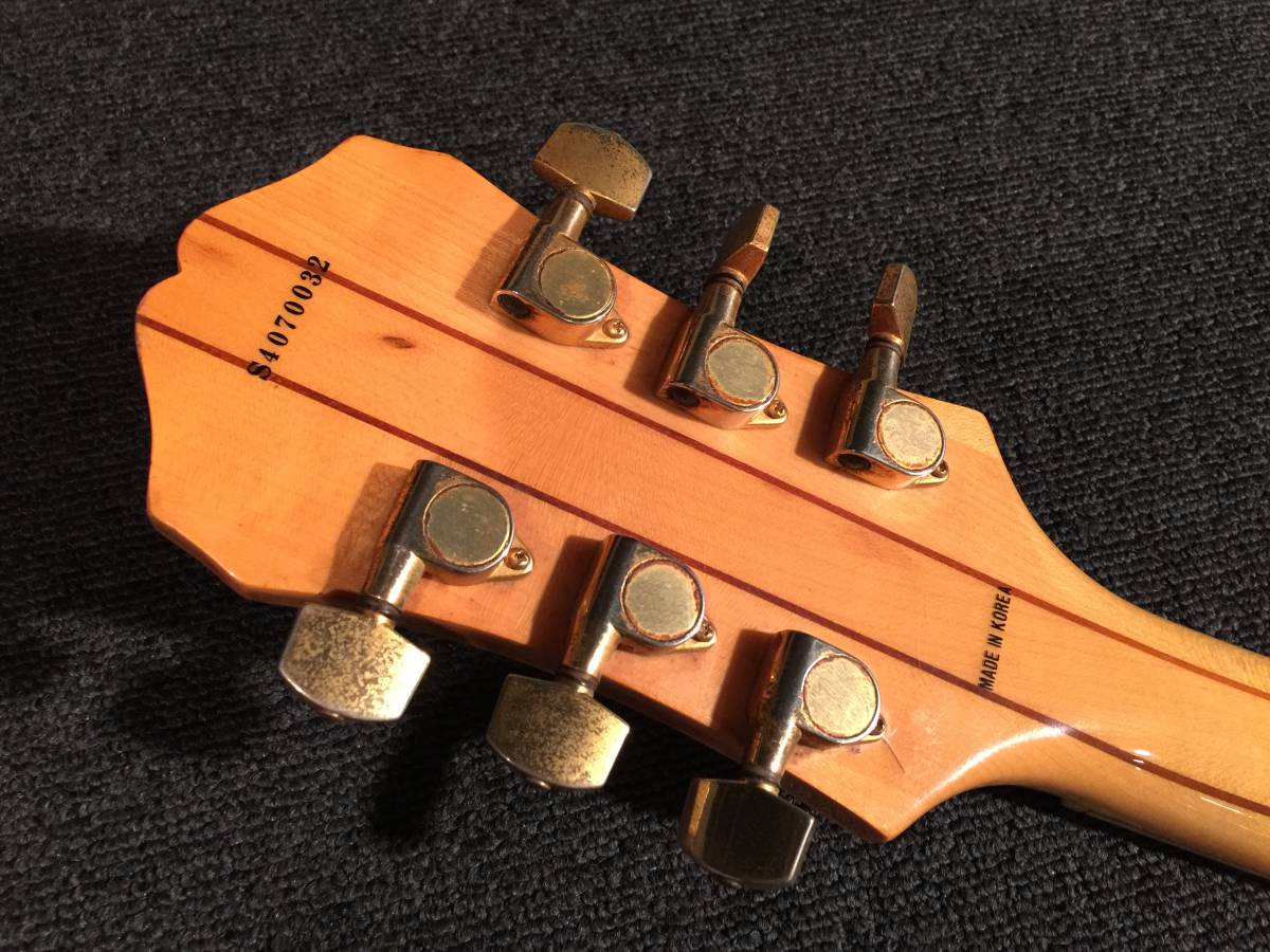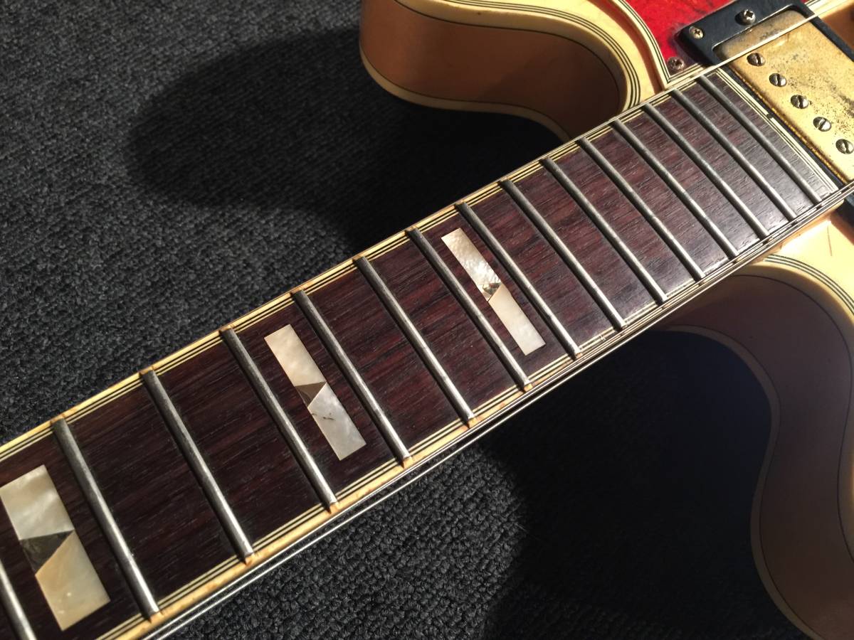 使用に伴う小さな傷打痕があります。 フレットは7-8分程度です。 ローフレット にヘタリはありますが もちろんビビりや音詰りするようなフレットもありません。 ネックはほぼ真っ直ぐです。 重さは約3.6kg位 シリアルは S407xxxxxxxとなっています おまけ程度のソフトケースが付属です。 プチプチに包んで発送いたします。 BODY メイプル NECK メイプル PEG ロトマチック FRETBOARD ROSEWOOD PICKUPS 2HB CONTROLS 2VOL 2TONE 0-12F 43-52.9mm TREMOLO - COLOR NAT ボディー ネック指板 クリーニング フレット 掃除 ネック ロッド調整済み 電装系 総点検済み カードで分割払いをご希望の方は ご入札前にご質問欄より お問い合わせください。 送料 クロネコヤマト 4000円 沖縄離島 5000円 クロネコヤマトセンター留め取引の流れ(^-^)-------------------------------------------------------------------------------- 1...落札メール (^-^)/ おめでとうございます! 2... 商品ページに送料記載 .....落札金額に送料を足してお振込決済ください 送料の記載なき場合 ........取引ナビよりご連絡致しますのでお待ちください 3...支払いが完了しました(^_^)...のご連絡を取引ナビにてお願いいたします. 4...入金確認連絡 (^-^) 入金確認後24時間以内の発送をこころがけております。 5..発送の連絡 (*^^*) お問合せ番号などご連絡致します 6...評価について (・∀・) 評価不要の方が多くこちらからは致しません頂いた評価に対してのみいたします 返品の際の注意事項です 返品不可とはしておりませんので どうしても返品ご希望の場合は 少々面倒な手続きとなりますが 対応させていただきます。 受け取り連絡はしないようお願いいたします。 お届け後3日以内にご連絡ください。 往復の送料分はご負担いただくことになりますのでご了承くださいませ。 ギターコレクションは面白い! 当たり前のことですが、 ギターは所有していても免許不要 登録の必要もなければ、車検の様な検査や、保険も必要ありません。 ケースに入れて保管しても駐車場代も車庫証明もいりません どうしても飽きてしまったら、手続きや、登録変更なしで、買い替え出来ちゃったりします。 チューブアンプにシールドを通してギター1本1本の音の差や作りも楽しみつつ バンドを組んで昔の仲間と集まったり.........帰りに居酒屋で飲んじゃったり(車検代と思えば安い安い) こんなにコストのかからない楽しい趣味はありません!! VINTAGE GUITAR他よろしかったらこちら↓もご覧ください ![]()