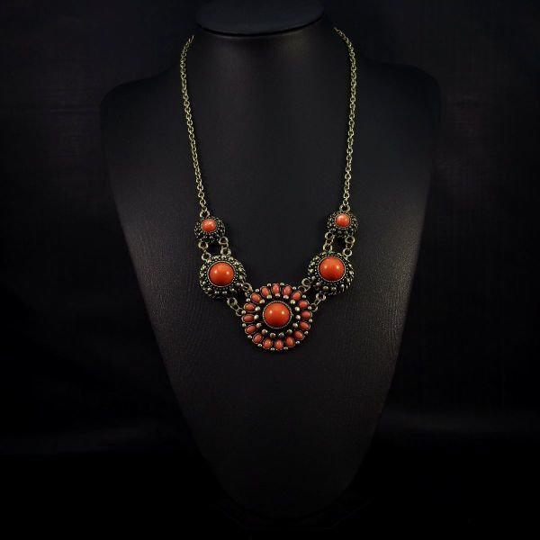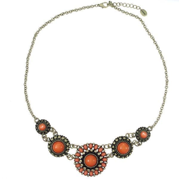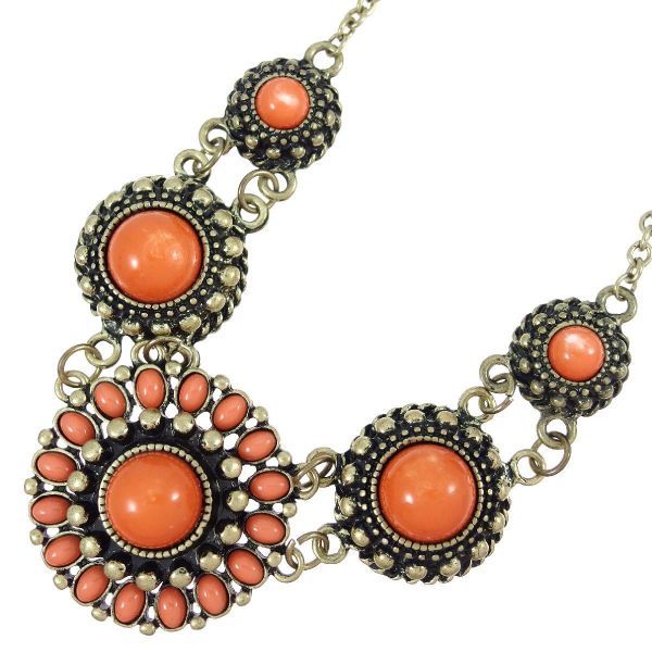 A3254◆ 【ICING】◆ オレンジのカボションで飾られたヴィンテージデザインのネックレス ◆ 長さ約49㎝ ◆