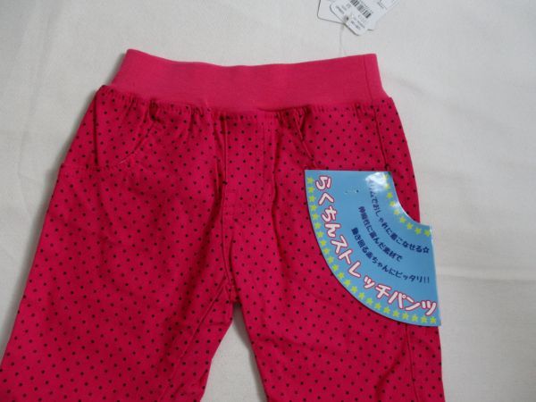 | SE710【Mariarjue】新品 ドット模様 くしゅくしゅ ストレッチ パンツ 女児 淡赤 80 | ||