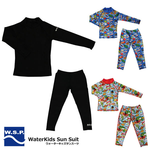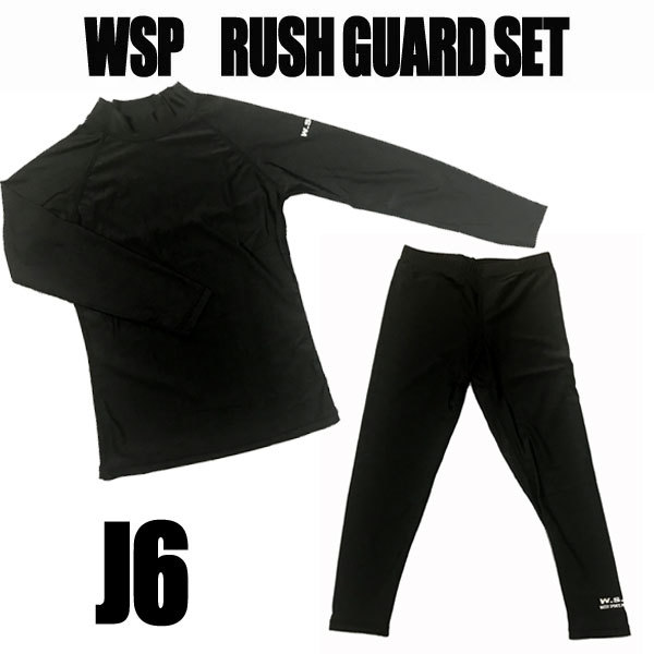 WSP 子ども用 ラッシュガード上下セット ブラック J6 ウォーターキッズ・サンスーツ