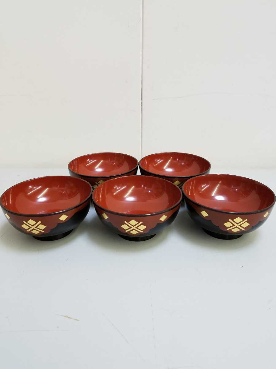 未使用 展示品 秀衡作 汁椀 5客揃 黒内朱