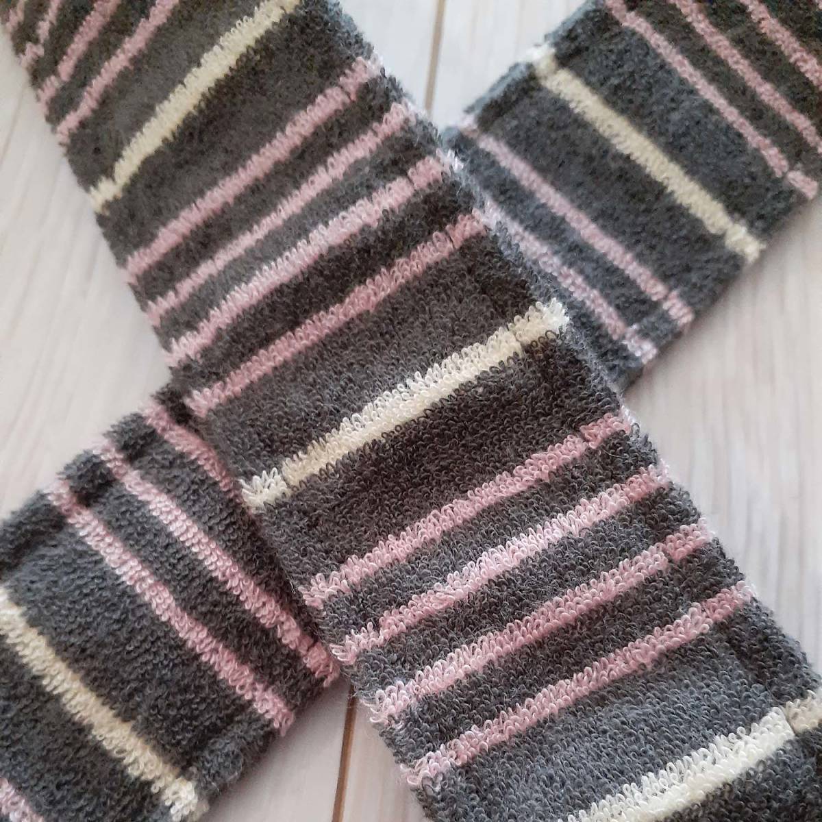 ストライプ(チャコール×ピンク×アイボリー)、表面:パイル素材