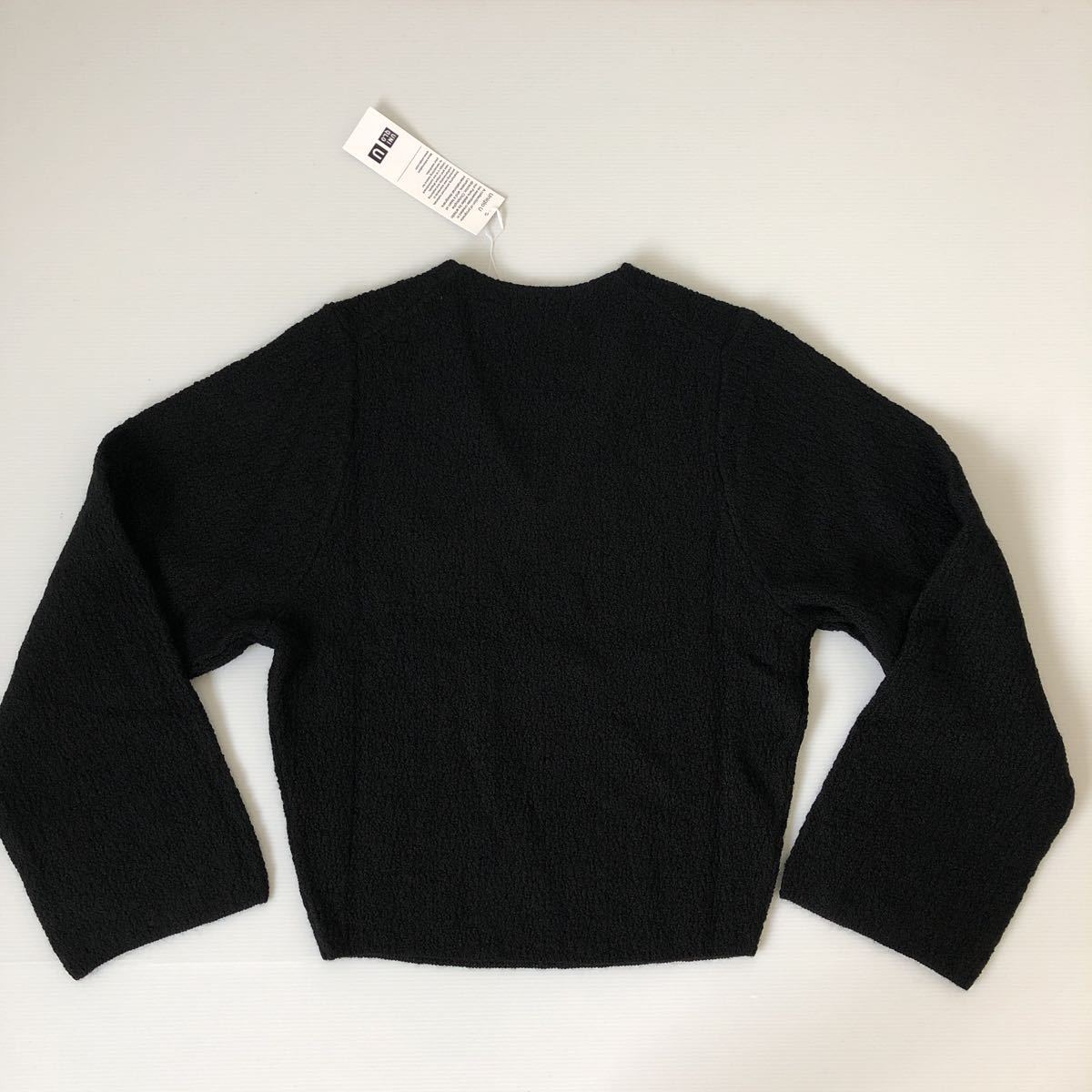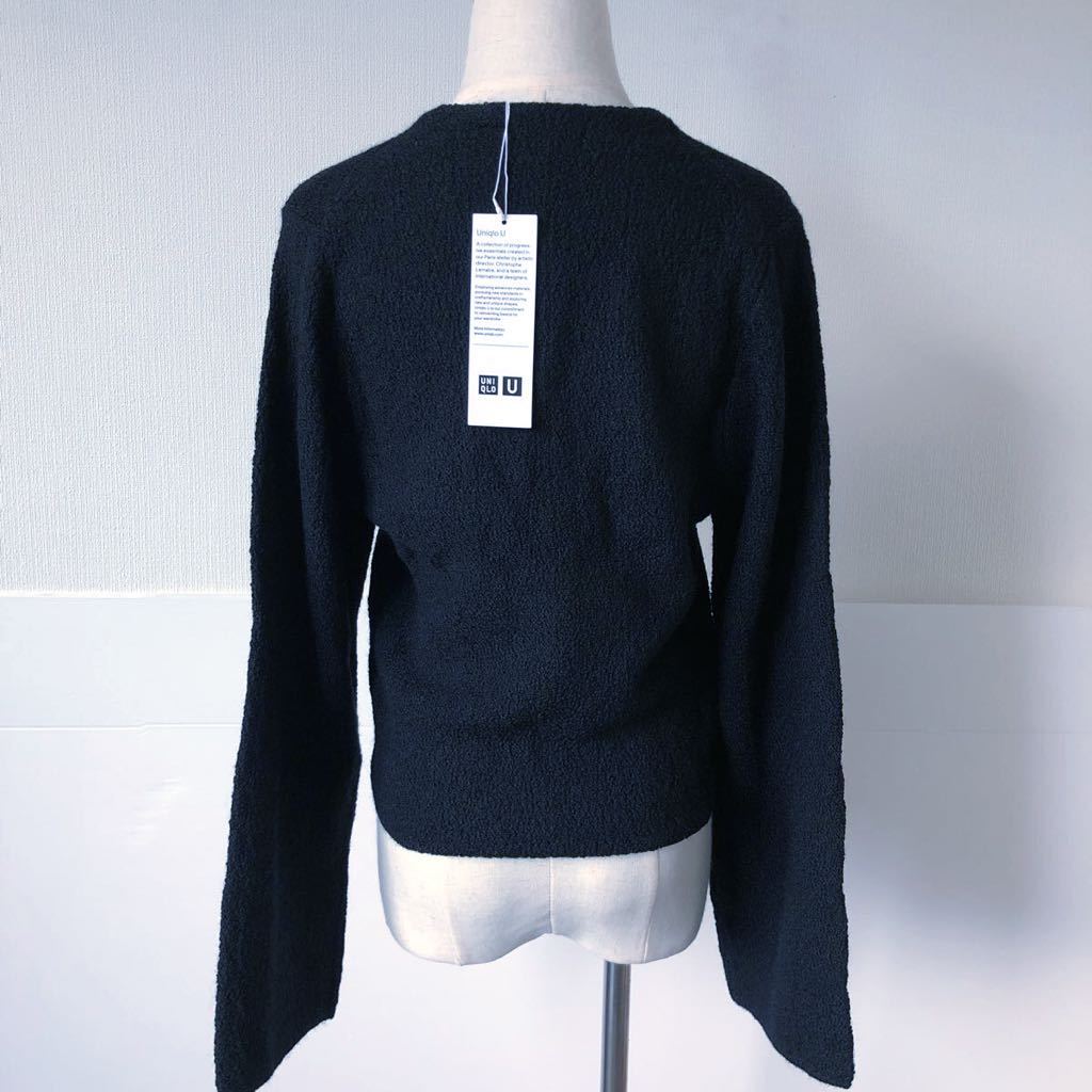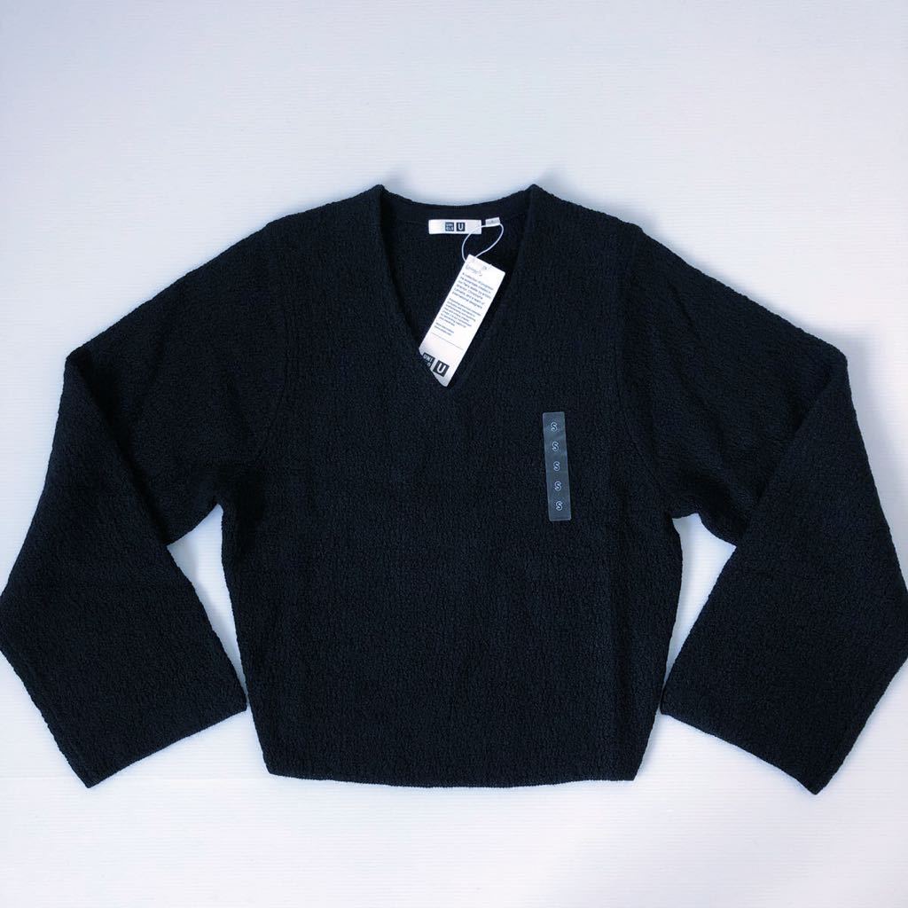 ルメール LEMAIRE ×ユニクロ セーター 黒 Vネック 女性S新品 ウールクレープワイドスリーブセーター 袖幅広 シボ ドレープ 4389円 保温