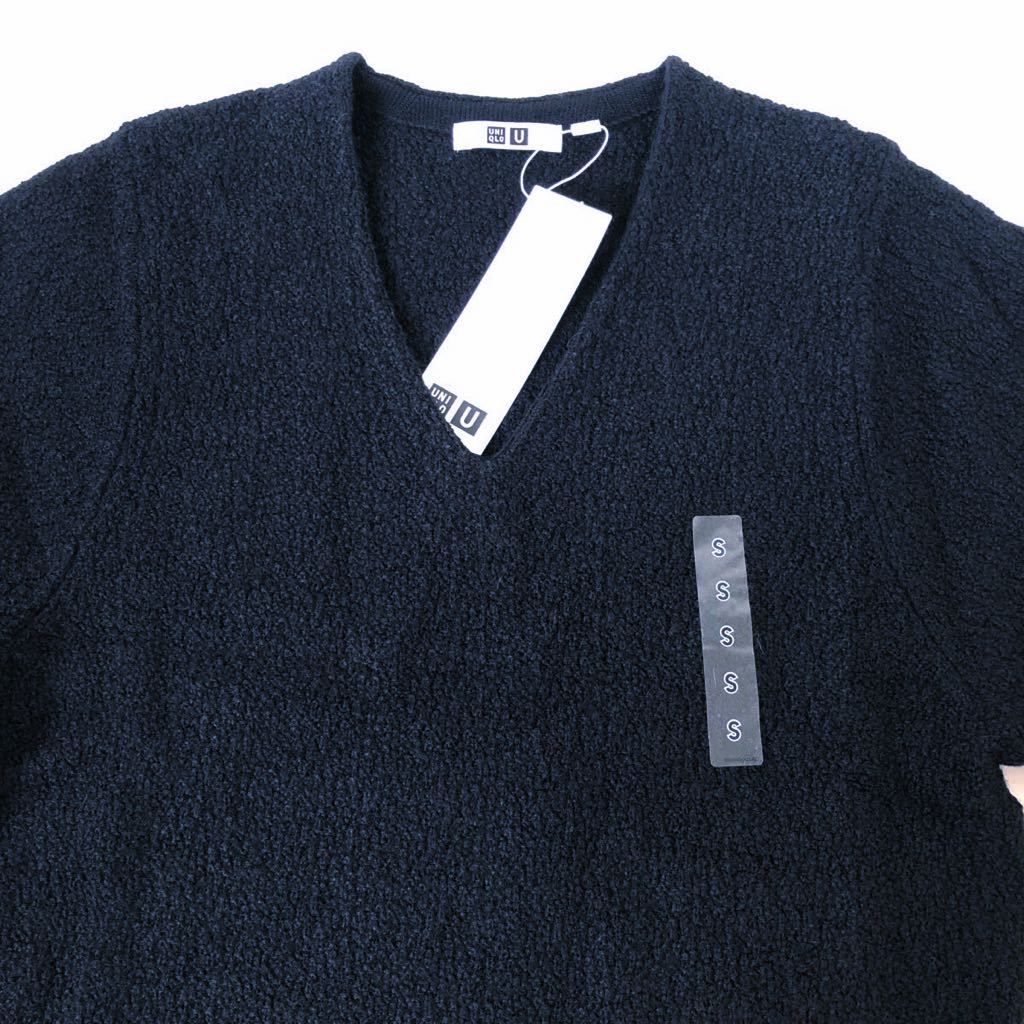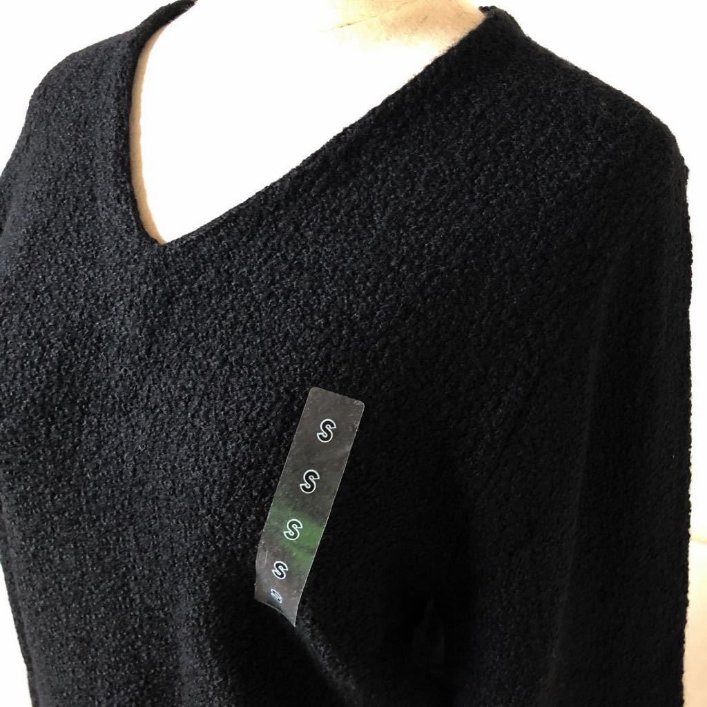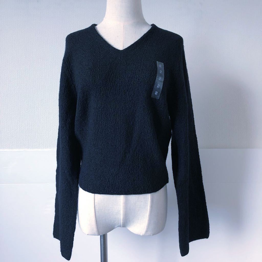 ルメール LEMAIRE ×ユニクロ セーター 黒 Vネック 女性S新品 ウールクレープワイドスリーブセーター 袖幅広 シボ ドレープ 4389円 保温
