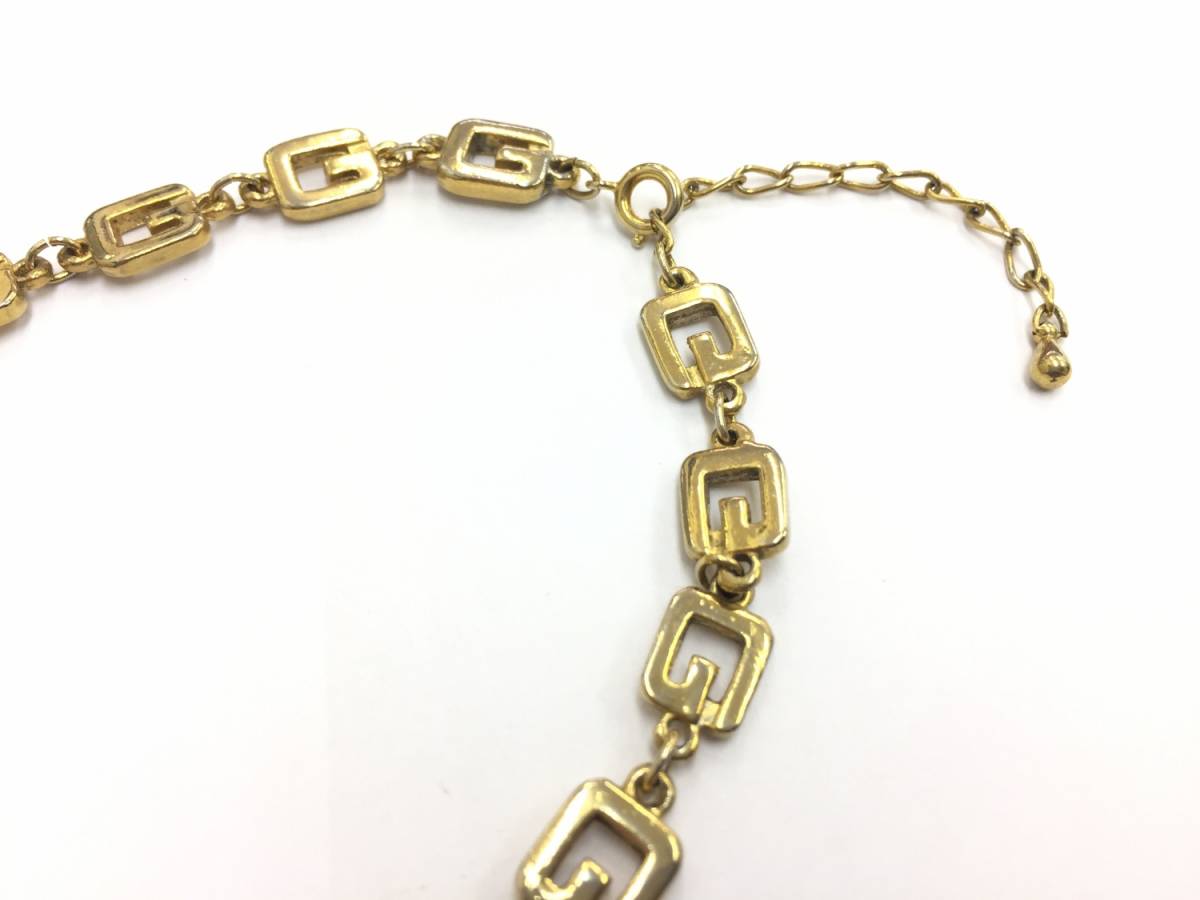 | 商品説明 | ◎サイズ ※多少誤差は生じると思います。 全長:約34cm+アジャスター5cm 重さ:約26g ◎状態 :中古 :全体的に色剥げや擦り傷あり。 :Gのような形のチェーン1個の縦×横:約7mm×8mmくらいです。(画像2) :ブランド名や素材を表すような表記や刻印は特に見当たりませんでした。 | ||||||