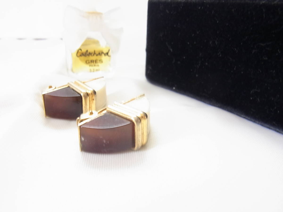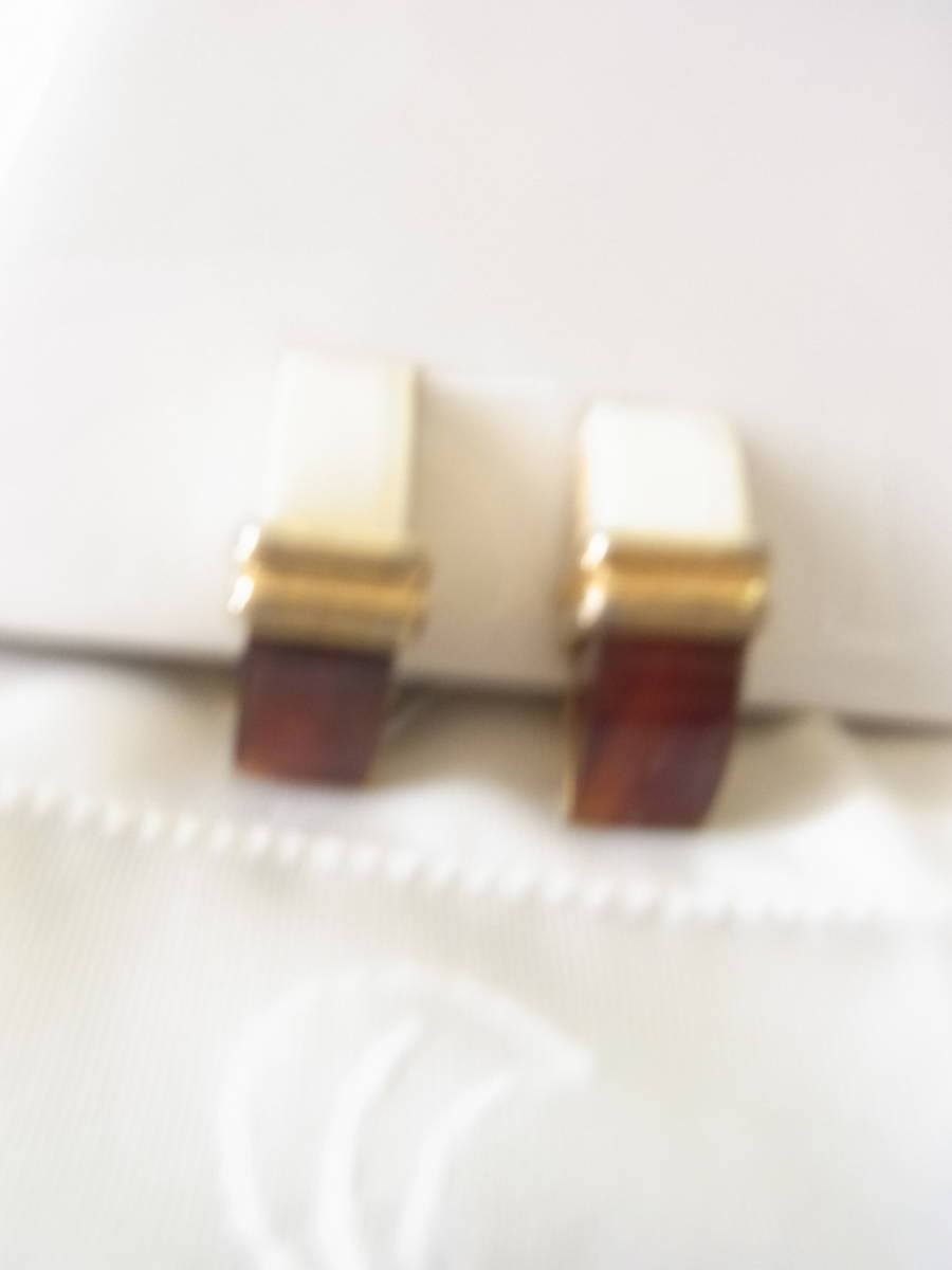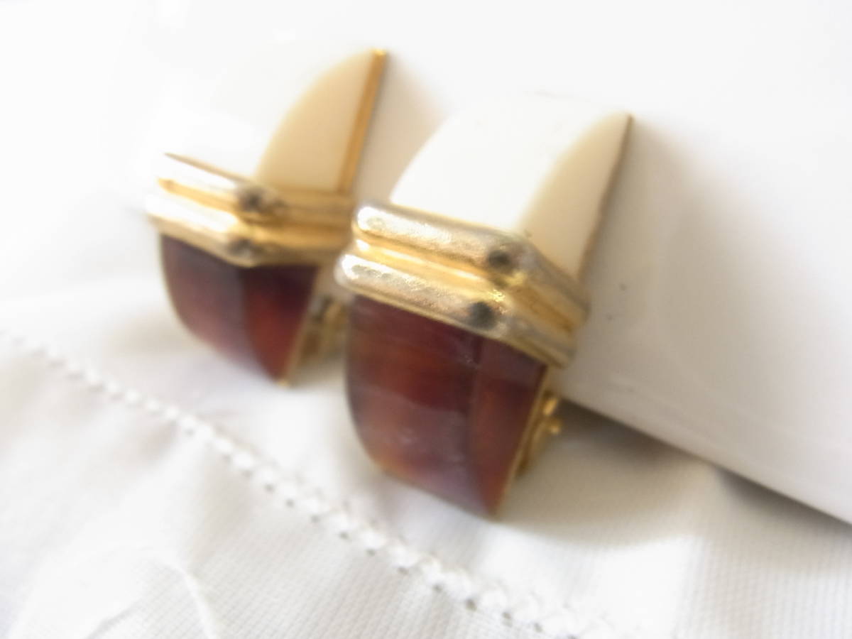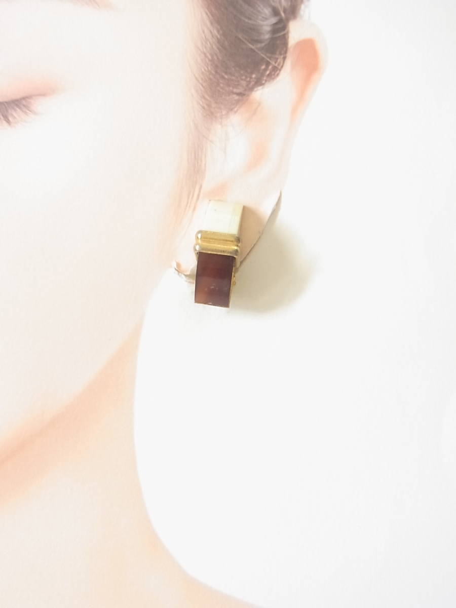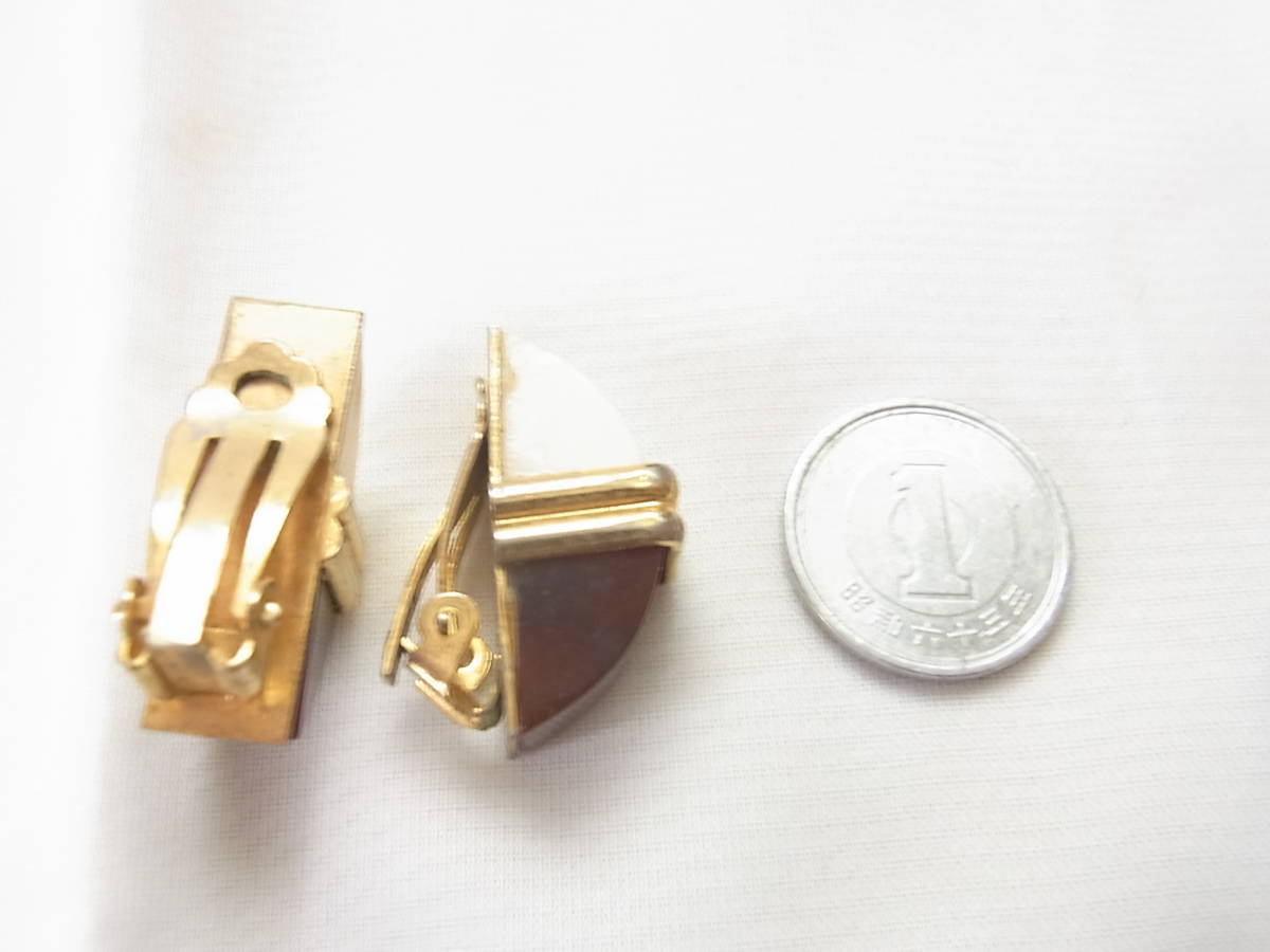 品質不明 ヴィンテージ/ビンテージ ニュートラ調 昭和なデザイン アイボリーホワイトとブラウンカラー 差し色金色 イヤリング▲