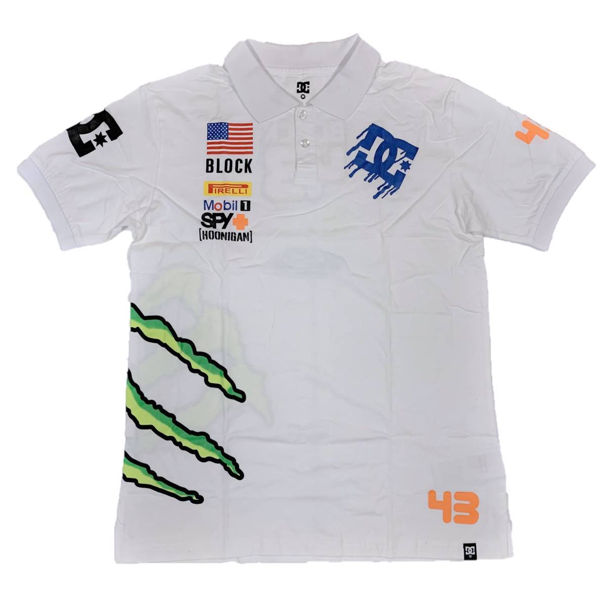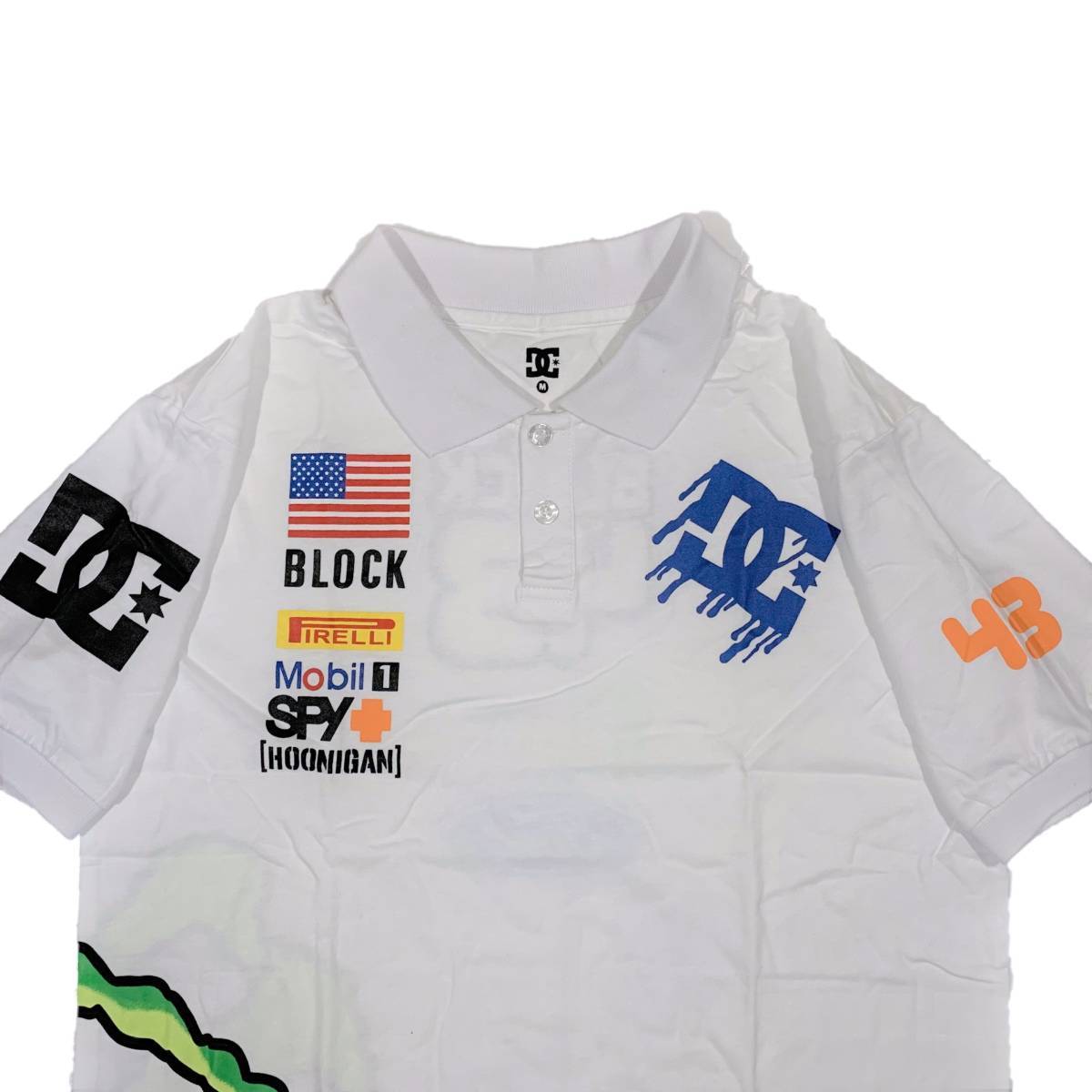 DC×モンスターエナジーのプリント半袖ポロシャツです。