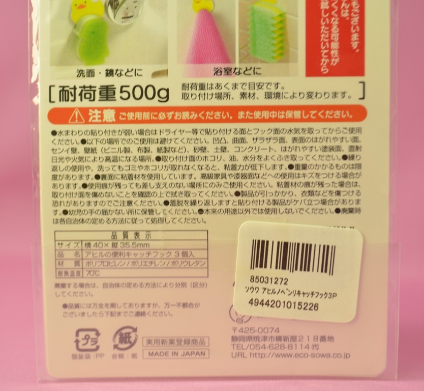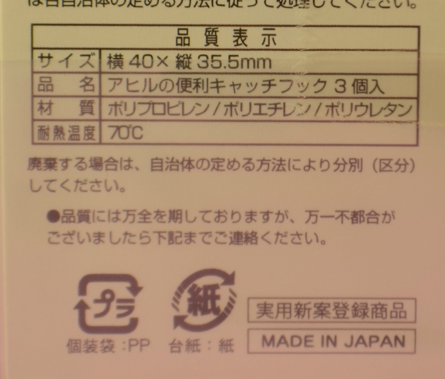 【新品未開封品】かんたんピタッと!とキャッチ(アヒルの便利キャッチフック3個入り) |