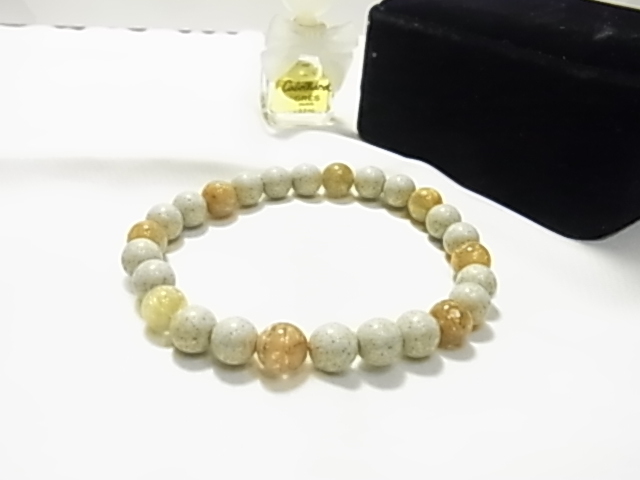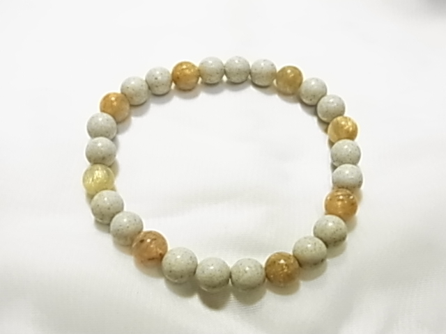 品質不明 パワーストーン? グレー系とタイガーアイ系のカラー 伸縮性 ブレスレット▽