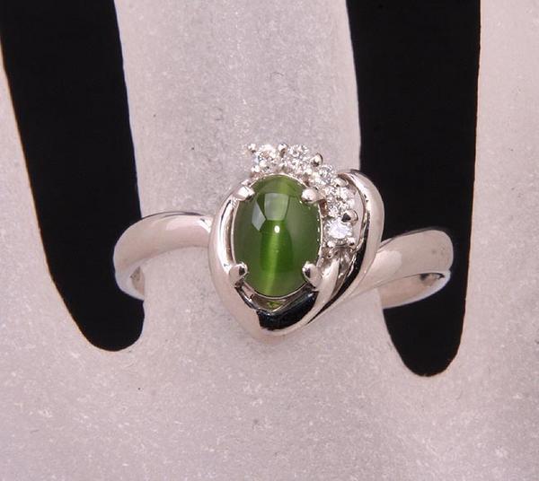 《質屋出品》Pt900★ダイオプサイトキャッツアイリング★C-2765