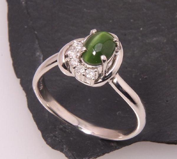 キャッツアイ効果の出るダイオプサイトのリングです。