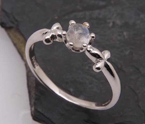 小さなカボションのムーンストーンが留められたリングです。