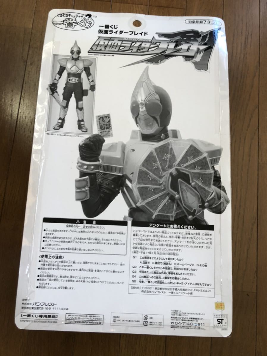 一番くじ仮面ライダーブレイドのビッグソフビ新品未開封です。大きくてリアルな造りです。写真の物がすべてです。古い物なのでパッケージには擦れや痛みダメージ、凹み、経年による変化や劣化などあります。この状態でも良い方どうぞ宜しくお願い致します、他にも同シリーズの仮面ライダーファイズも出しています。