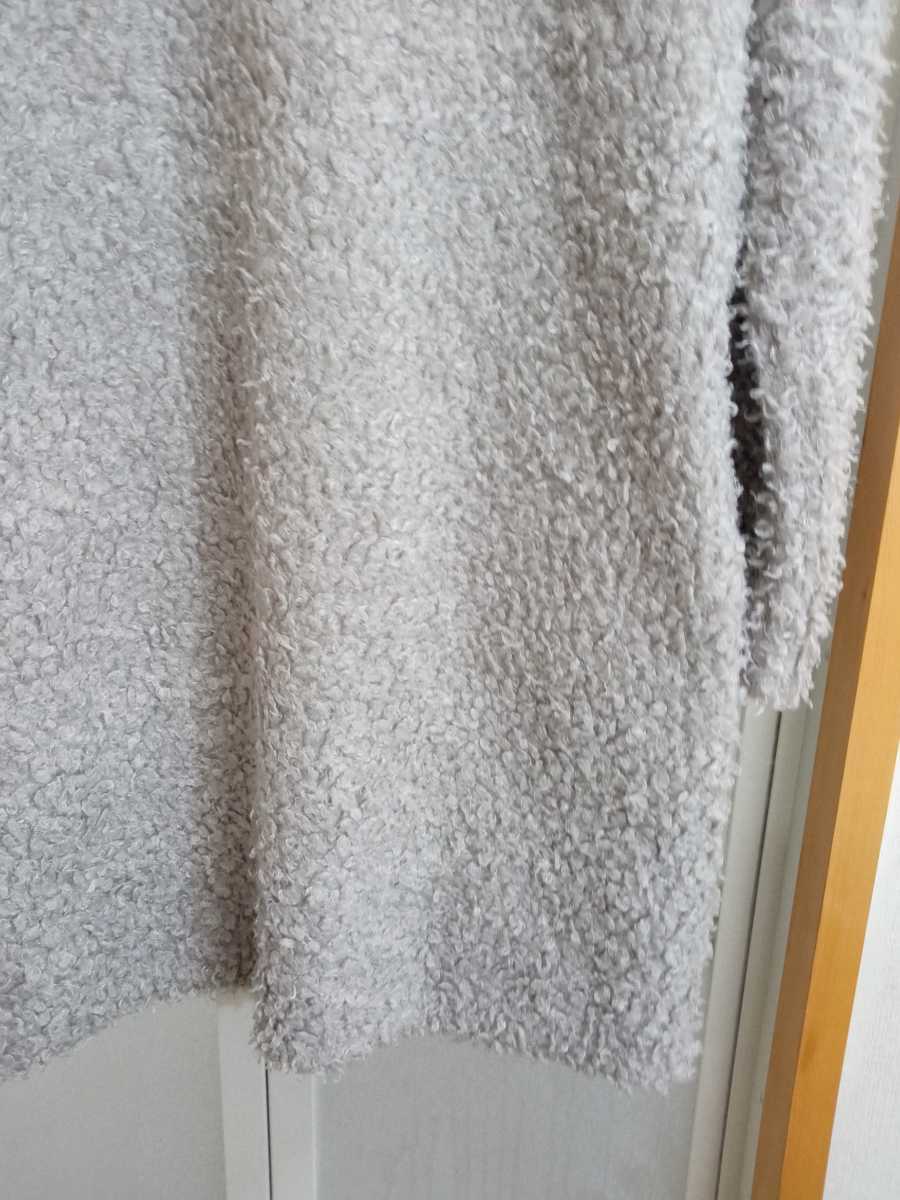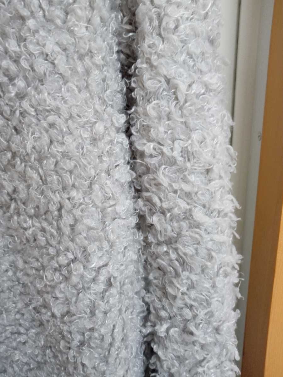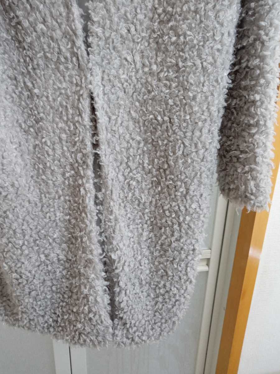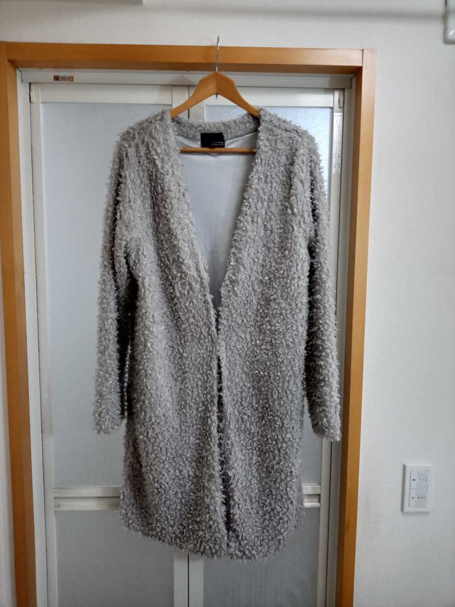 ライトグレー色のステキなフェイクファーモコモコロングコートです。