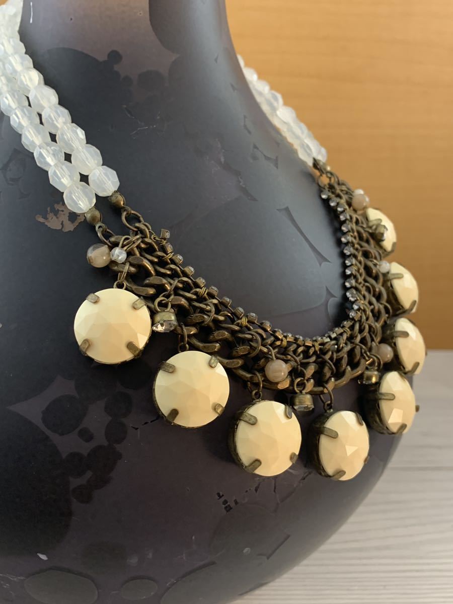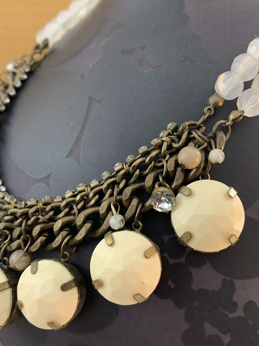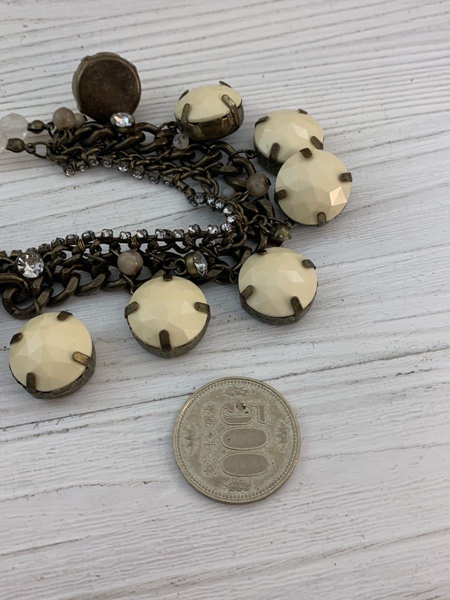 【送料無料】ヴィンテージ ネックレス クリームホワイト ラインストーン 大きなモチーフ 中古 コスチュームジュエリー