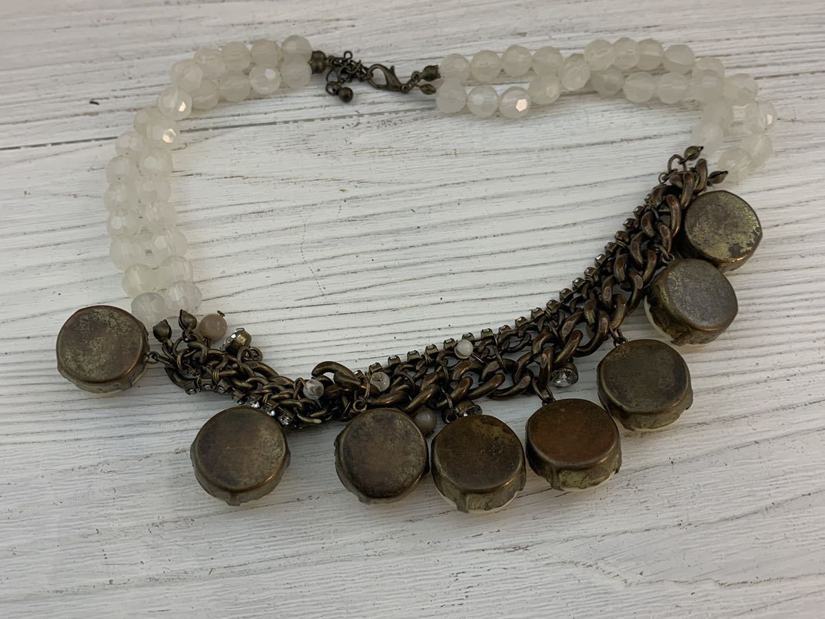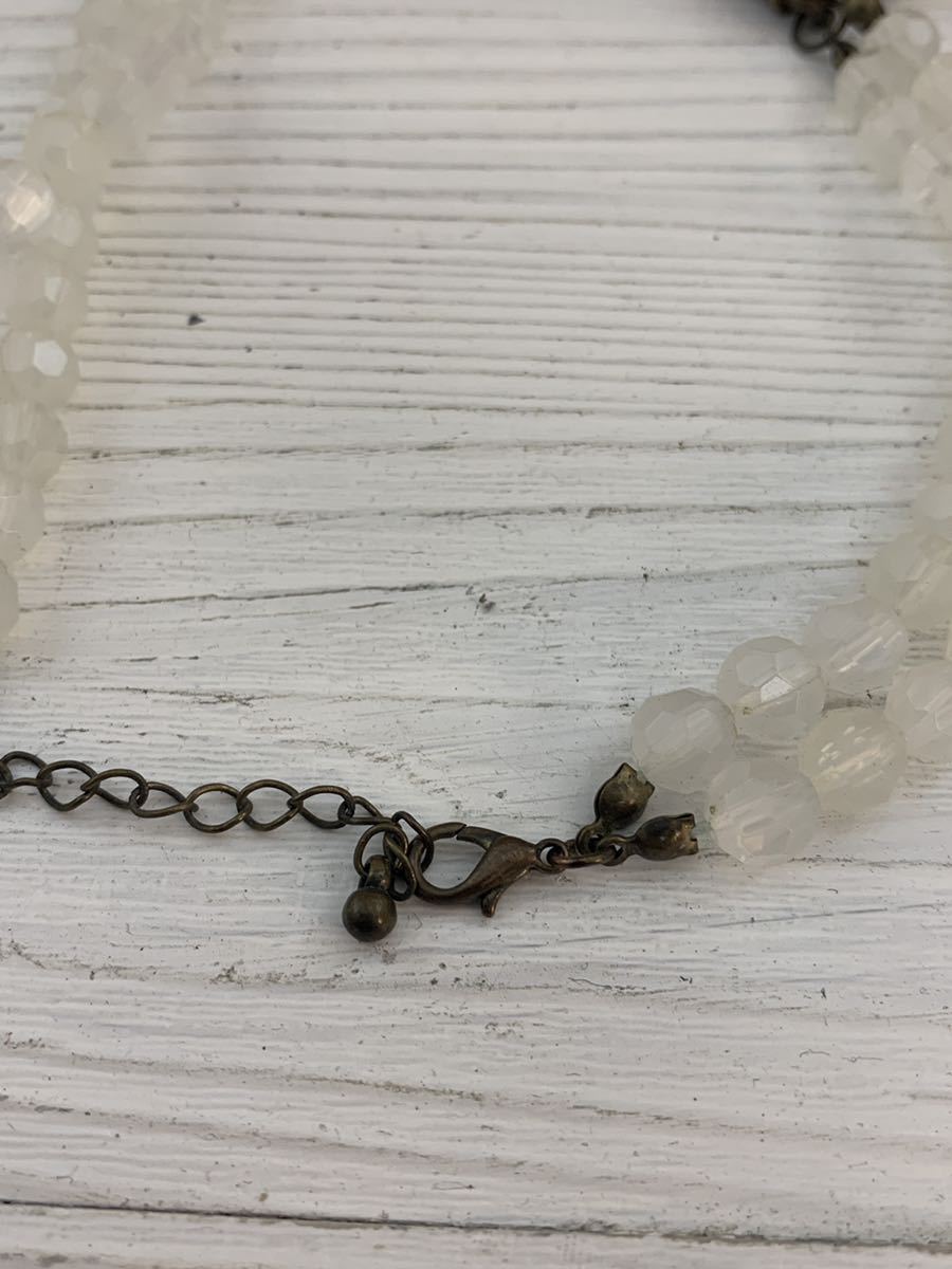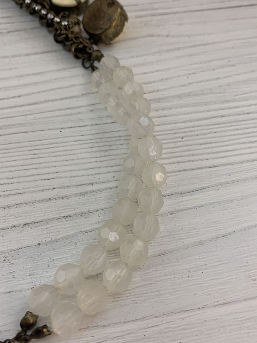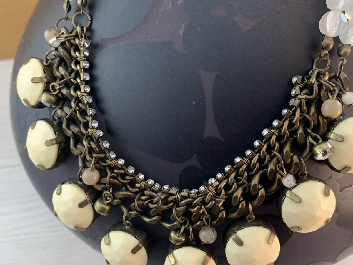 【送料無料】ヴィンテージ ネックレス クリームホワイト ラインストーン 大きなモチーフ 中古 コスチュームジュエリー