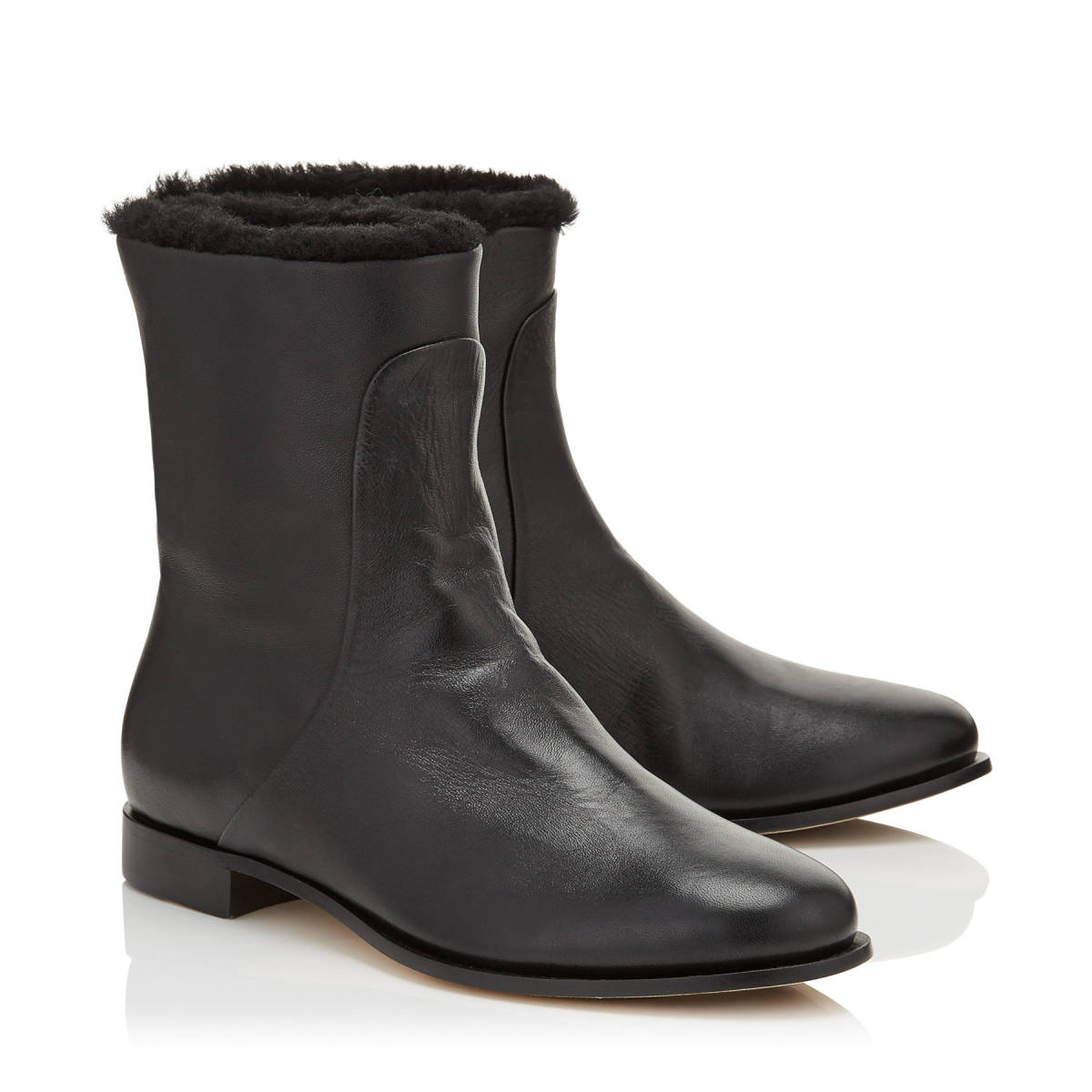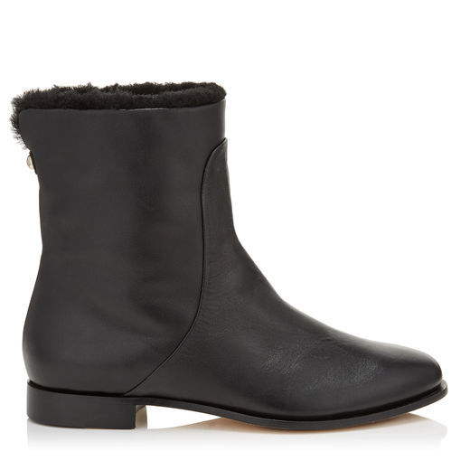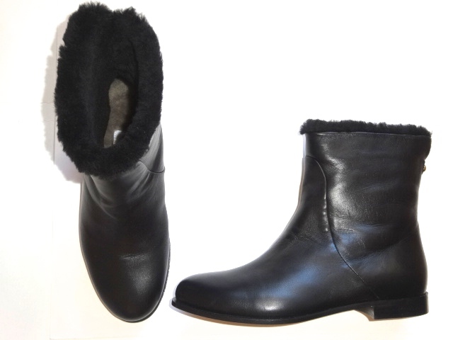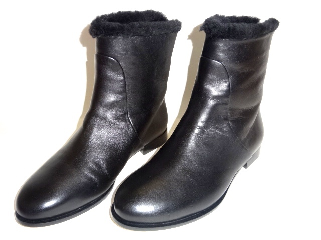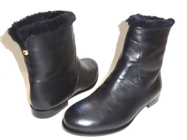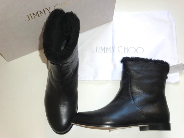 ● Jimmy Choo フラット ショートブーツ 37 23,5cm ボア ファー レザー 革 黒 新品 Mission Flat ブーティー ジミーチュウ イタリア製 16万