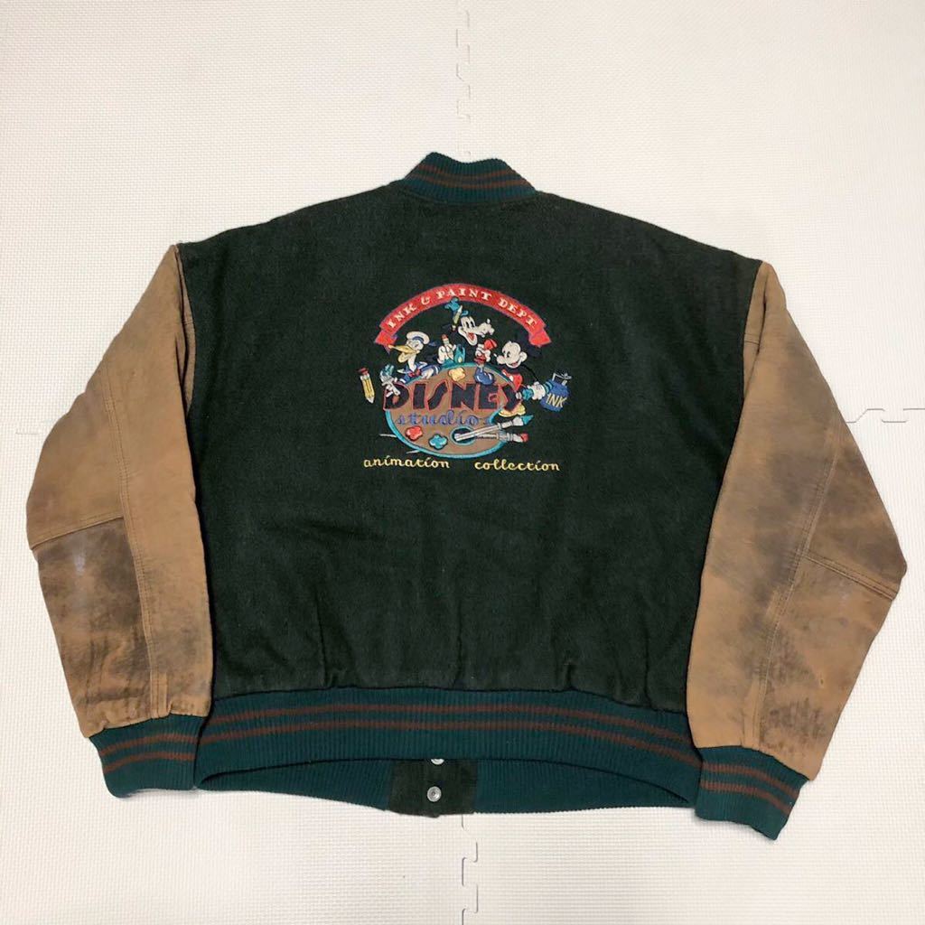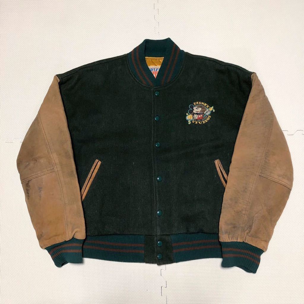 Disney Studio ディズニー USA製 Mickey ミッキー 袖革 スタジャン ジャケット M