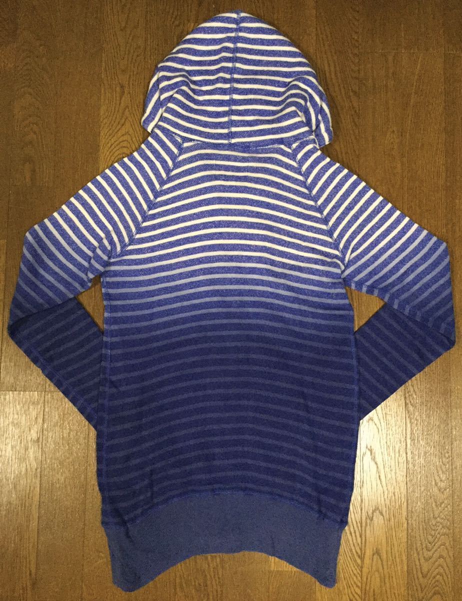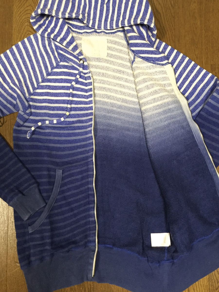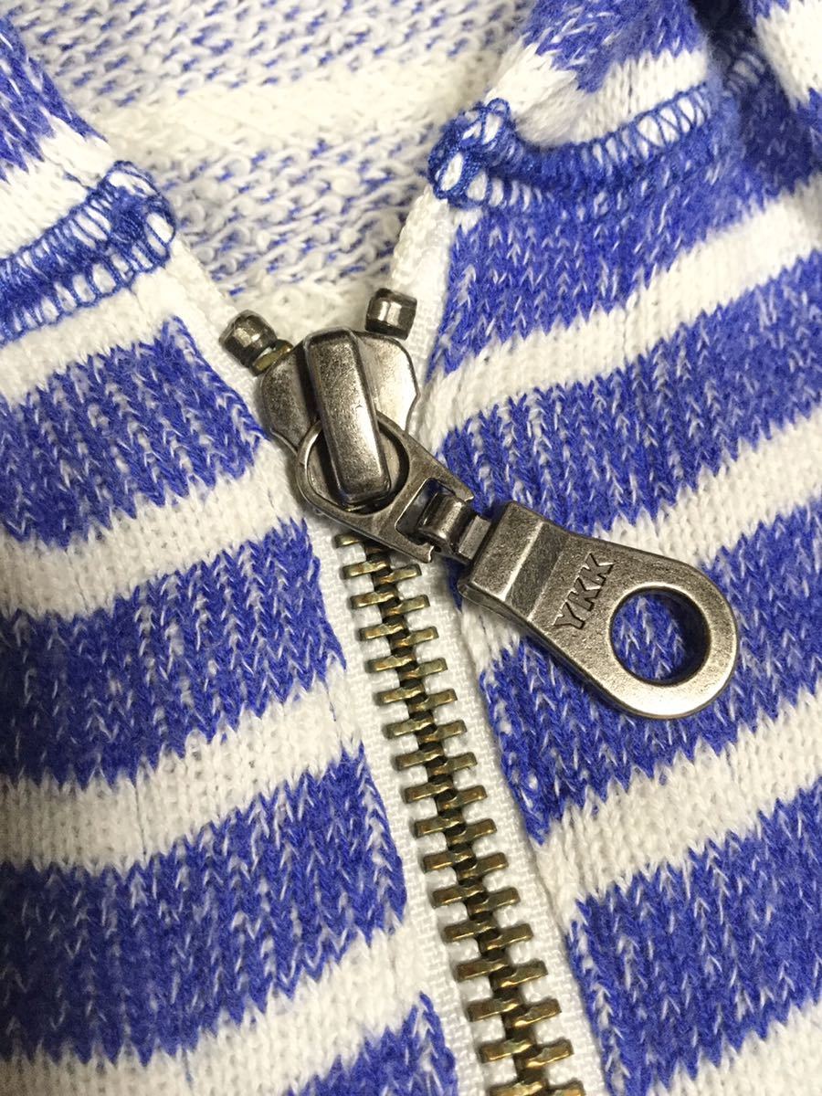 今回出品致しましたのは、ボーダーにグラデーションを重ねたデザインの、コットンニット地のジップアップパーカーになります。