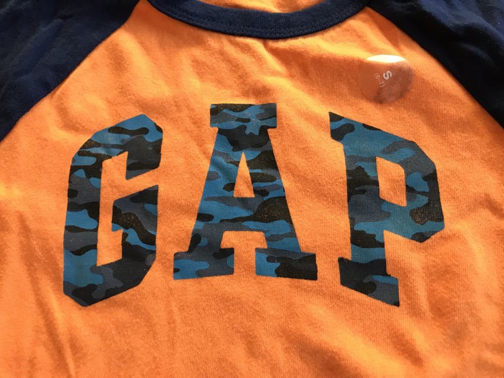 ■GAP■ロンT■新品■110■オレンジXネイビー■USA■ギャップ■GAPロゴTシャツ■ロゴは海軍迷彩■迷彩■2-2