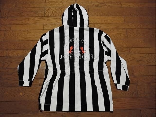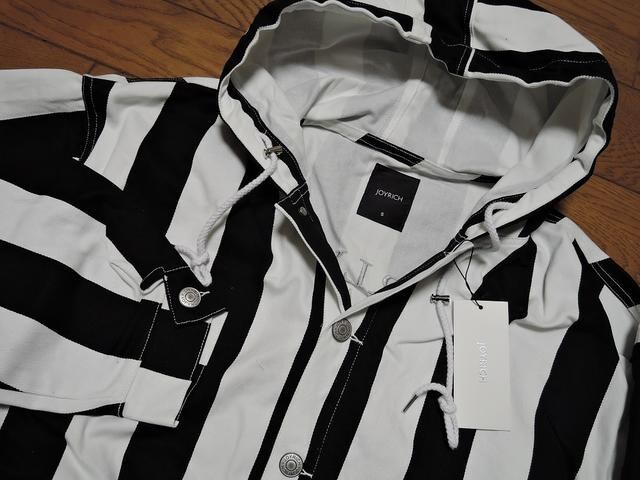 新品 JOYRICH ジョイリッチ パーカー コート ジャケット S 黒白 ストライプ 刺繍ステッチ 定価24800円