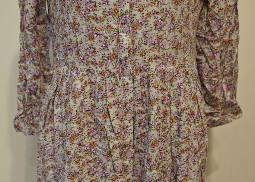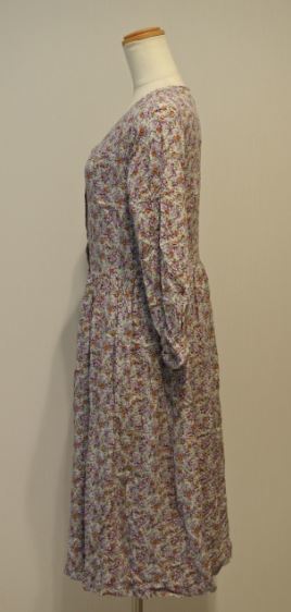 Crisp クリスプ ワンピース 長袖 ブラウス 小花柄 パープル系 Vネック Fサイズ bnbi k2h1226★