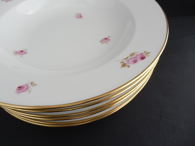 | オールドオークラ(大倉陶園)ピンクの小さなバラ模様が描かれたスーププレート6枚のご紹介です。 他にサラダやパスタプレートとしてもお使いいただけるサイズのプレートです。 マークの年代か80年~100年くらい前に作られたお品です。 古いものですが、未使用に近いキレイな状態で美品と言えます。 サイズ 口径 22cm 高さ 4cm 製作年代 1919年以降~ 郵送について アメリカ(ロスアンゼルス)から発送 郵送期間7日~10日間位 送料6500円(国際郵便) 国際郵便の為、配達日指定や時間指定、着払いは 出来ません。追跡不可 国際宅配便(EXPRESSなど)での郵送をご希望の方は 送料を確認してご連絡致しますので お問い合わせ下さい。 | ||