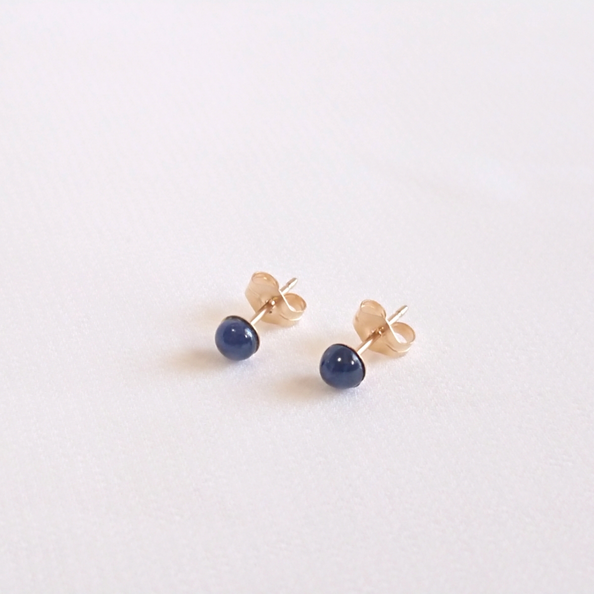 とっても小さなアフリカ産の宝石質ブルーサファイアのシンプルなスタッドピアスです。