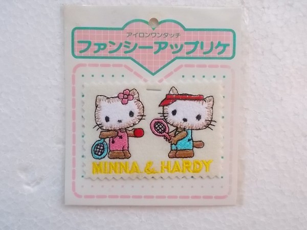 80s ファンシー アップリケ 昭和 レトロ 猫 ネコ ワッペン/テニス スポーツ ねこ パッチ キティ? かわいい キャラクター279